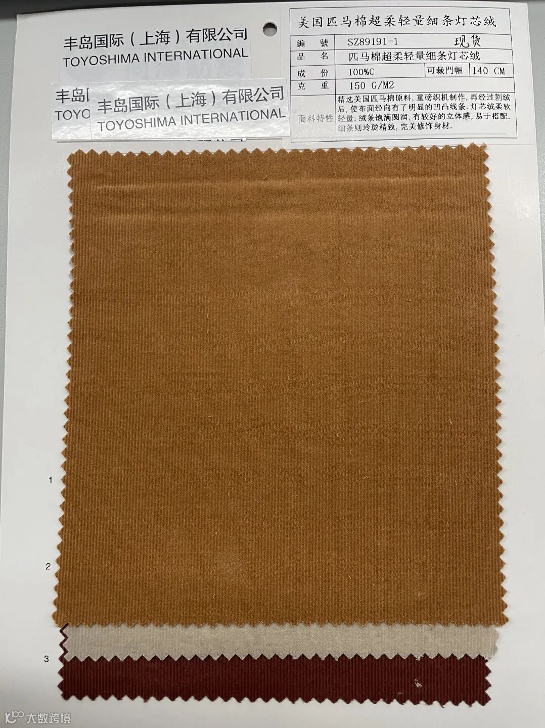 现货,匹马棉超轻柔细条灯芯绒,柔软轻量,绒条饱满圆润,有较好的立体感,易于搭配,细条则玲珑精致,完美修饰身材。