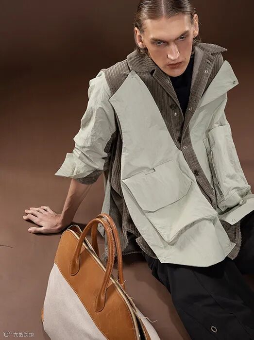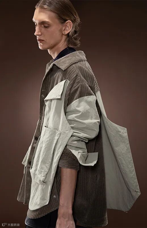 斜纹条,但构成斜纹的,是细腻的帆布灯芯绒。帆布灯芯绒相比起绒条来说,也是一种不同的风格。