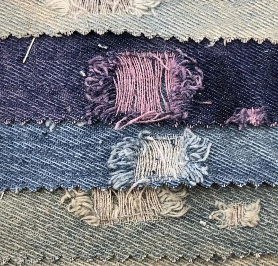 石洗后布面则呈现灰蒙、陈旧感,有轻微至重度破损。
