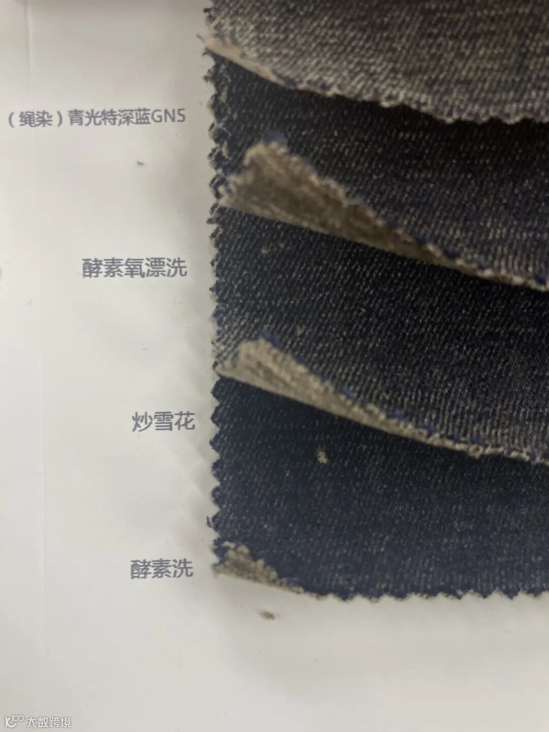 其中主要有:酵素、石磨、喷沙、猫须、硅油、漂色、套色、雪花洗。