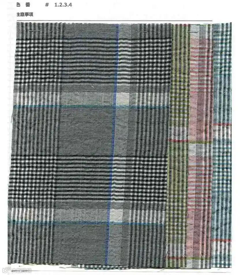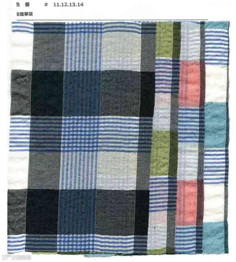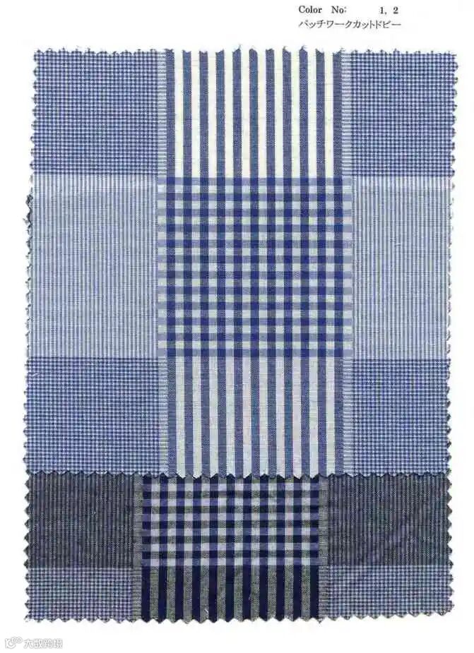 轻盈的棉丝混纺面料,带有通透感,非常适合制作春夏款衬衫等服饰。1-4 号为格伦格纹款式,11-14 号为变形方块花纹款式。