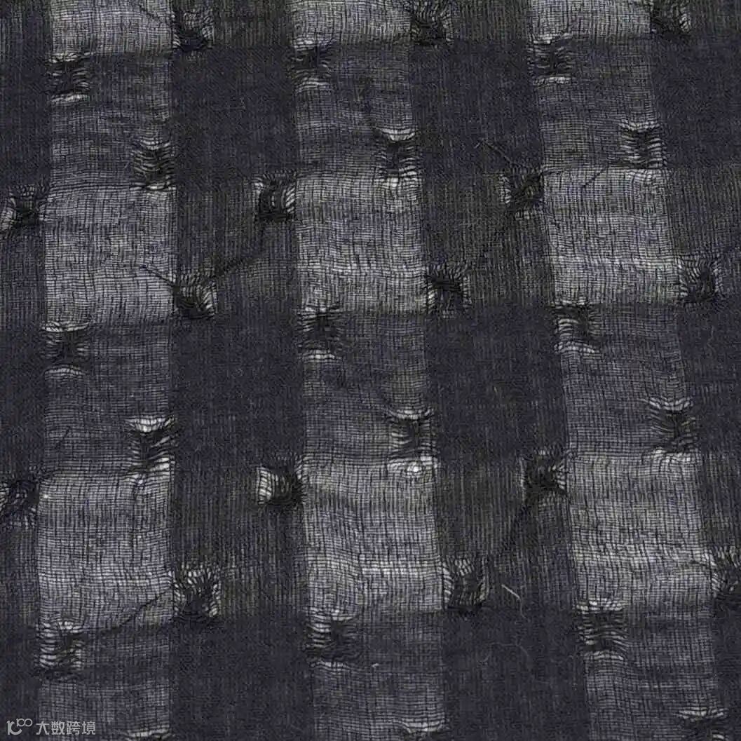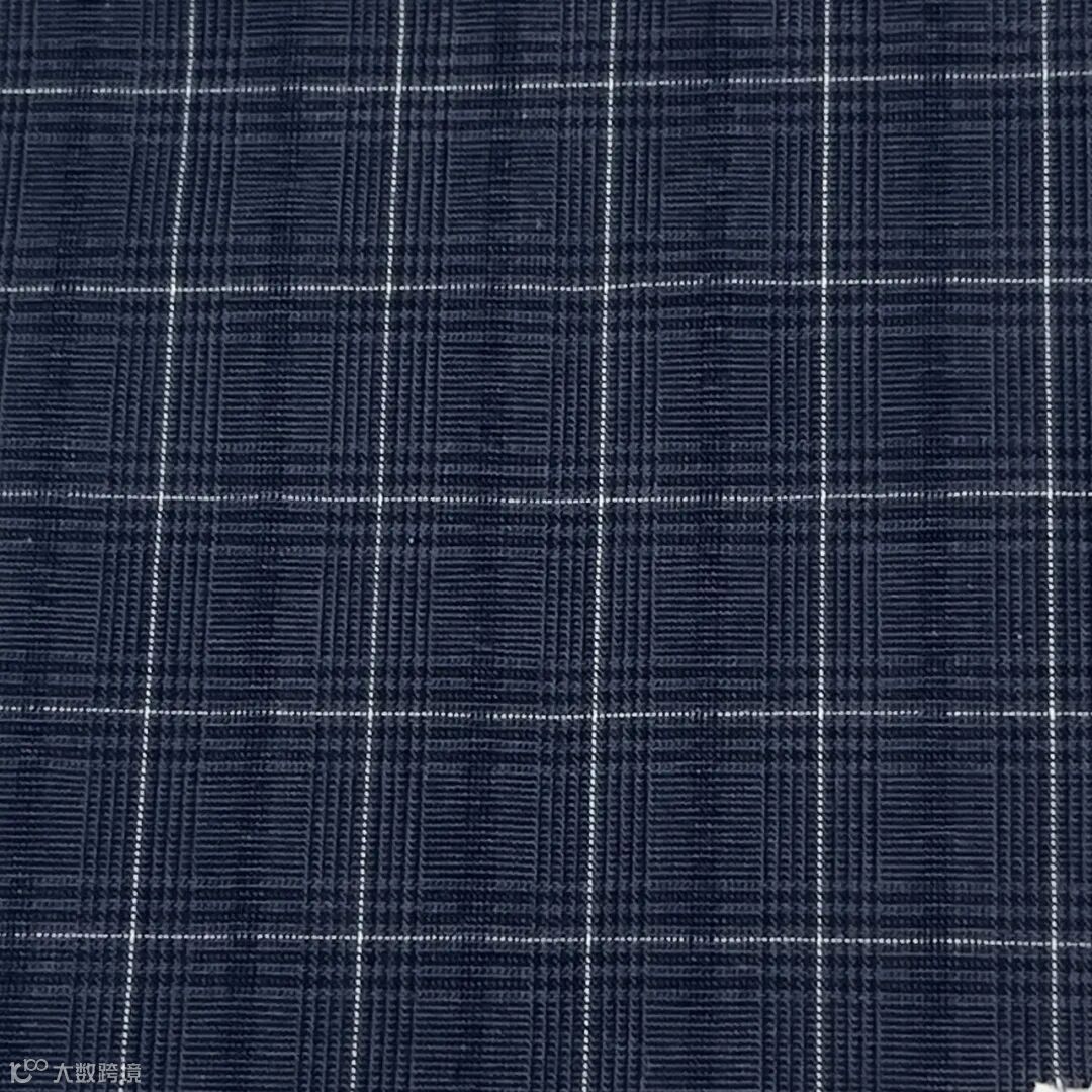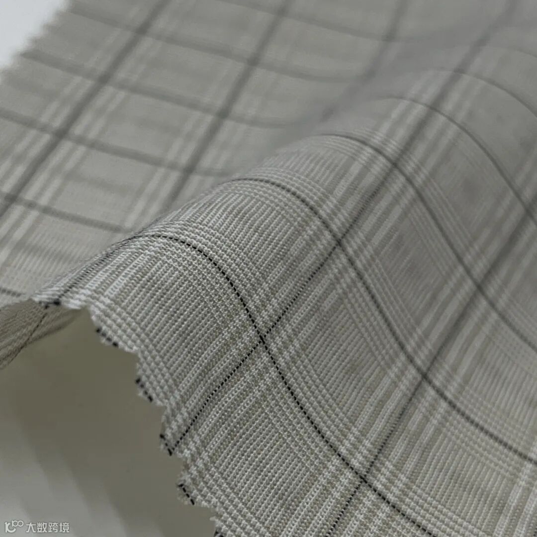 提花工艺,面料表面呈现细腻的凹凸感,不规则的锯齿状格子纹理,具有通透感,既体现轻薄质感又不强调 “透光”。