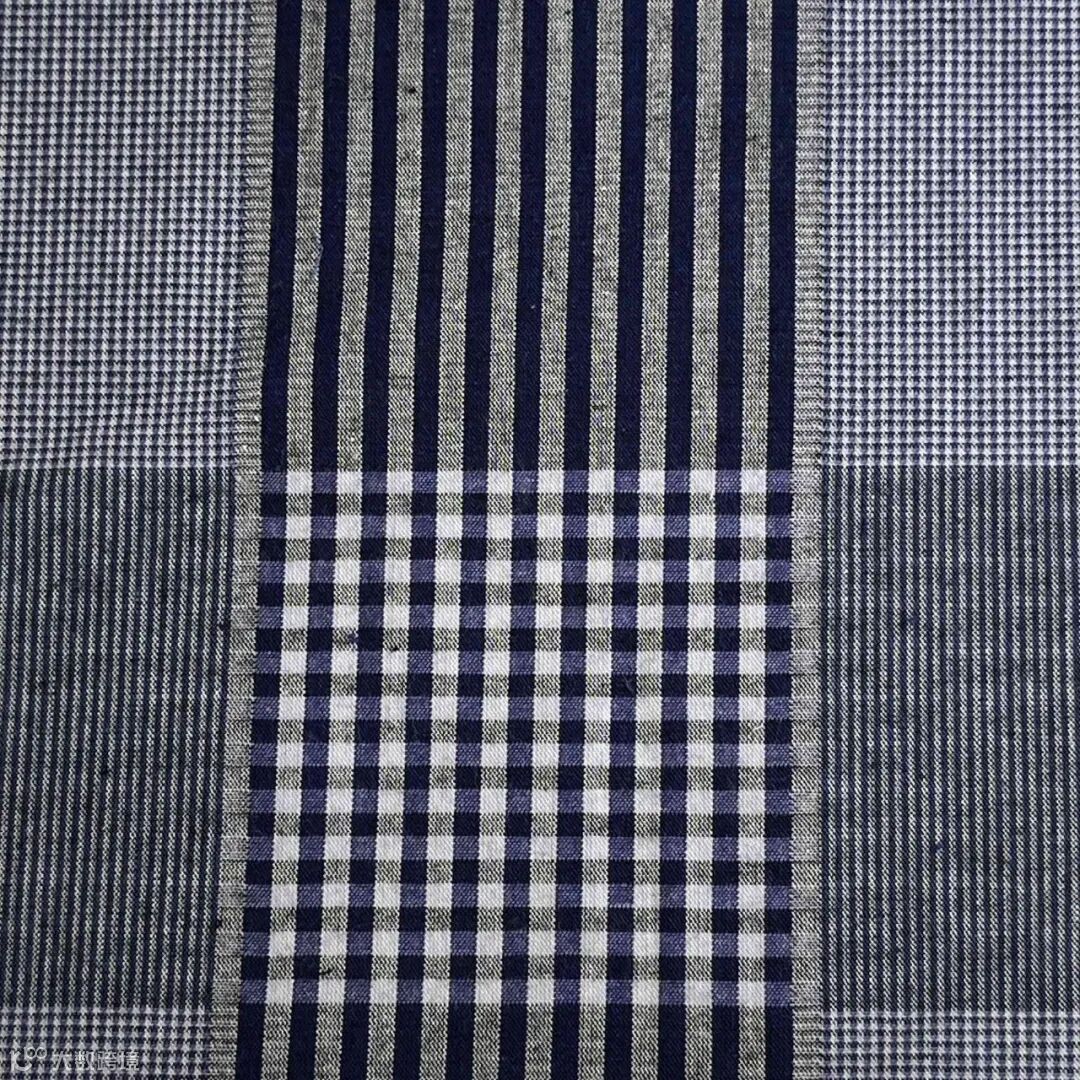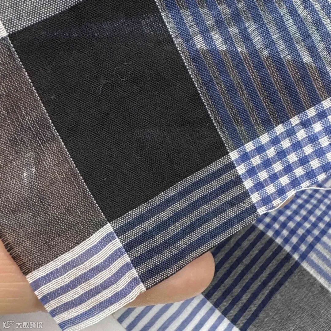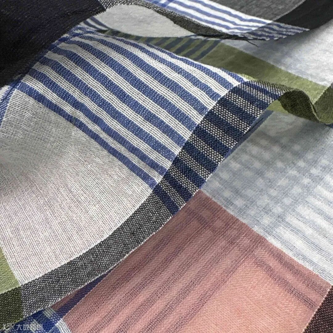 提花工艺,面料表面呈现细腻的凹凸感,不规则的锯齿状格子纹理,具有通透感,既体现轻薄质感又不强调 “透光”。