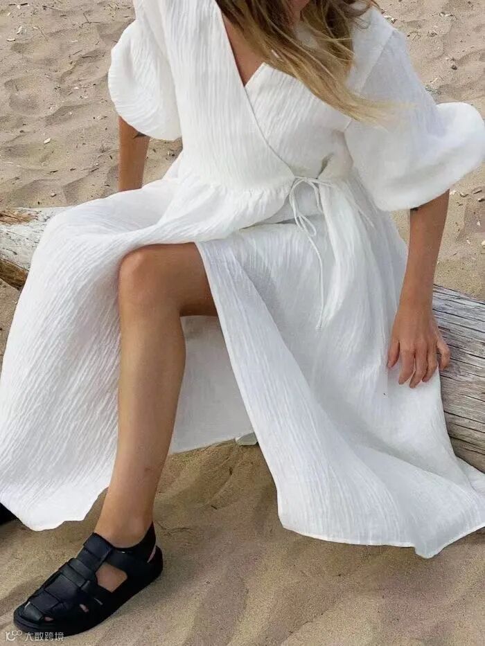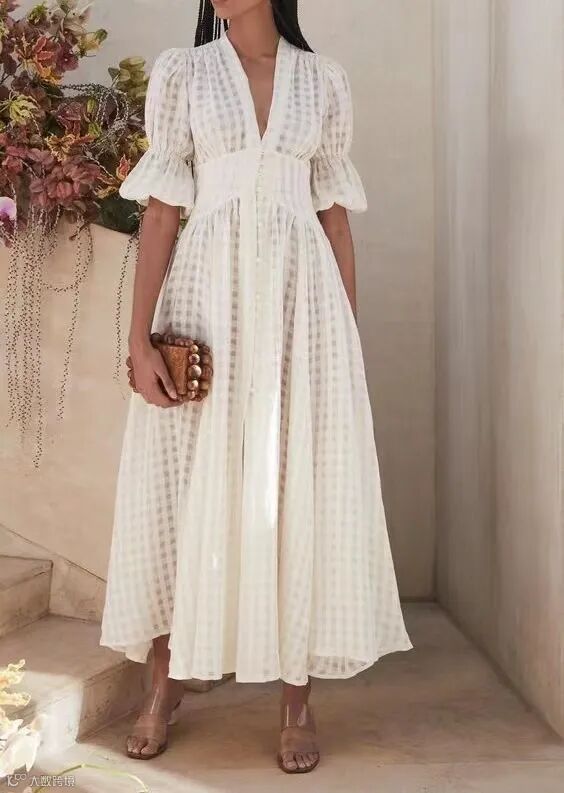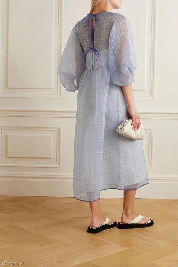 真丝面料的奢华与高级质感的演绎下,带有小女人的优雅浪漫田园风格,更有邻家少女的气息。真丝双绉连衣裙,面料表面有轻微的起伏感,塑造面料质感,收腰的款式具有日常休闲感,更凸显女性魅力。