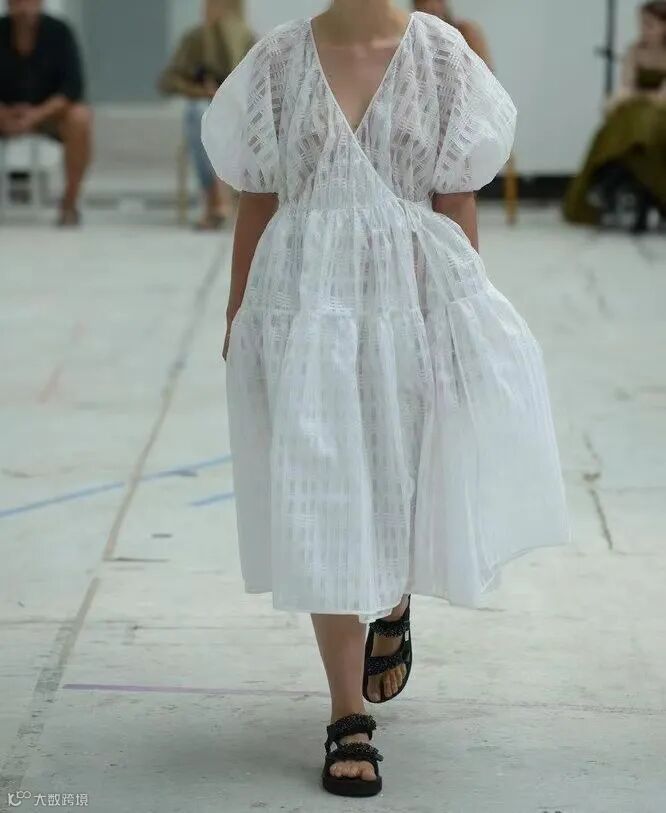每个品牌有自己风格调性的基础上,从面料品类上看,占比最高纱织轻薄柔软舒适透气,蕾丝和光泽丝绸面料也在连衣裙等品类里有部分占比,从面料材质上看,混纺的面料占比最高不同的材质配比出质感不同面料效果,丝棉面料的使用在逐年增加,真丝仍然是大牌最喜爱的面料材质。