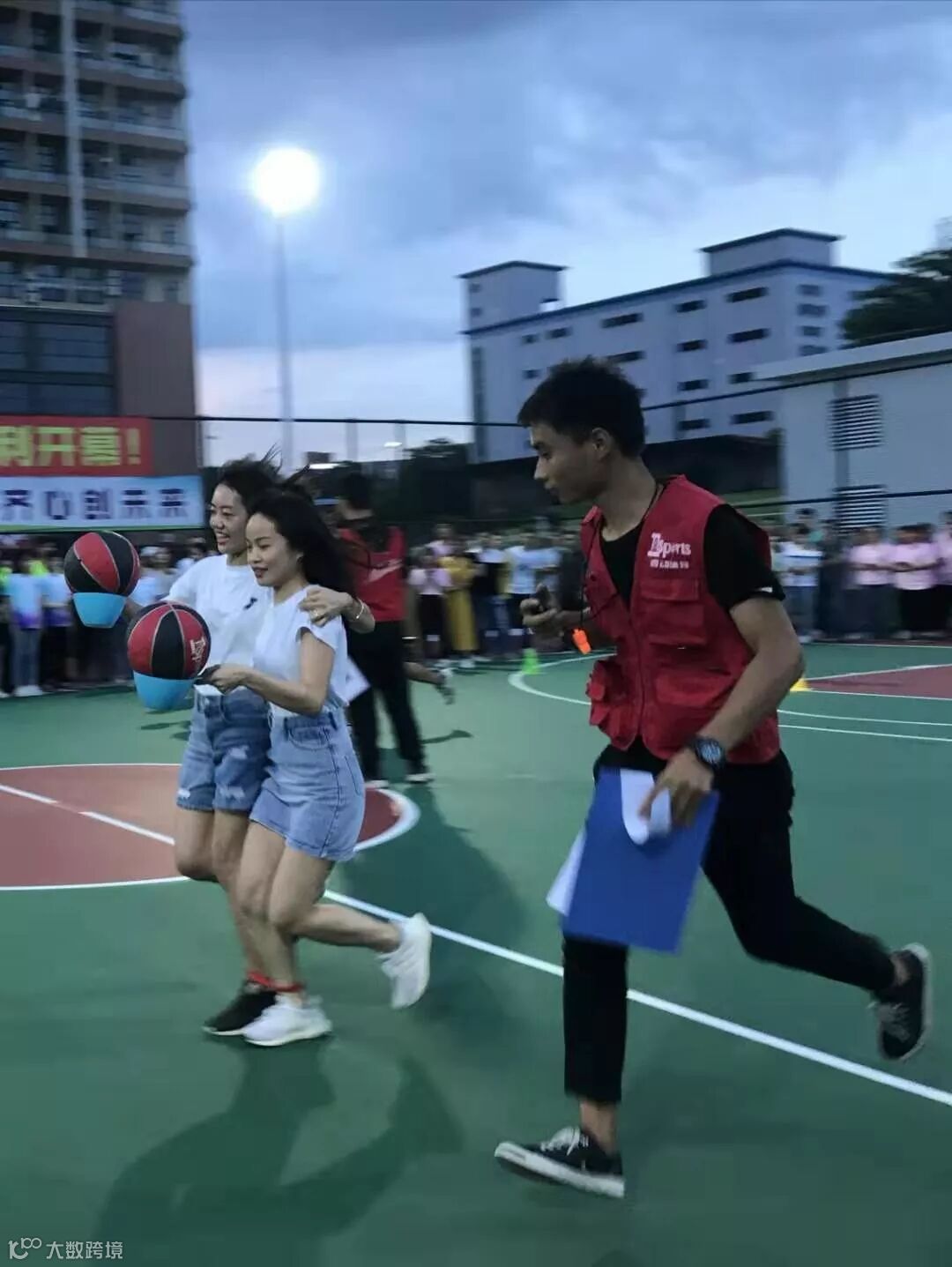7月24日下午,雨后的天空分外好看,在比赛场上,二人三足运球赛女子组已准备就绪,蓄势待发。经过激烈的角逐,联大集团的女将们,默契十足,健步如飞,完美配合,取得第二名的好成绩!