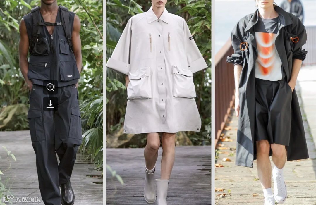 消费者开始追求在近郊户外寻求初心、感受自我生命力,并积极参与趣味性的户外活动,因此贯彻自然循环和可持续时尚的材质概念,同时,面料面观更加追求自然元素的艺术性表达。
