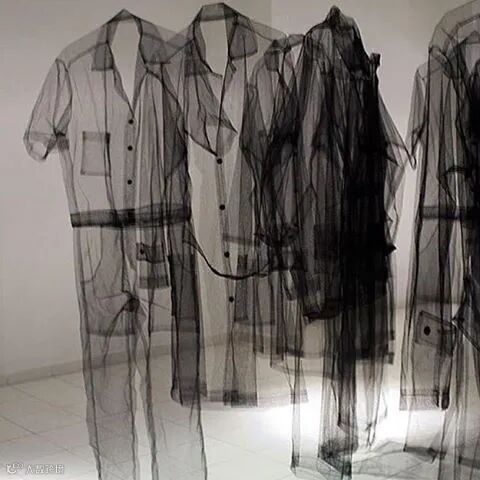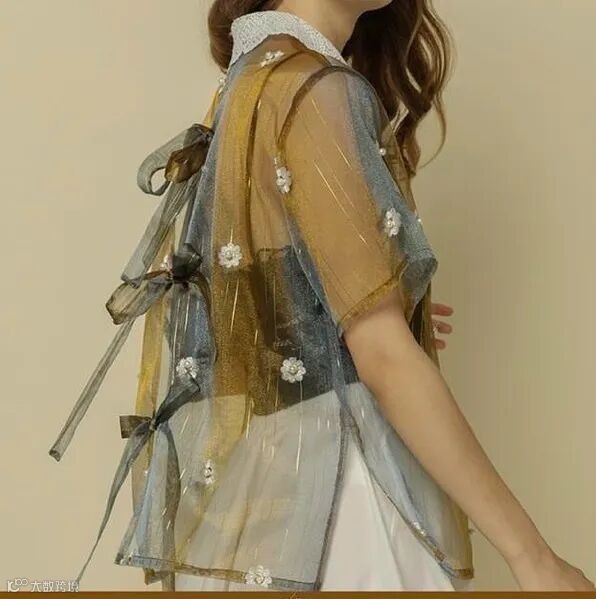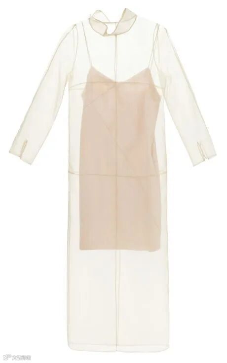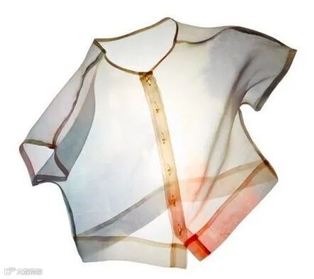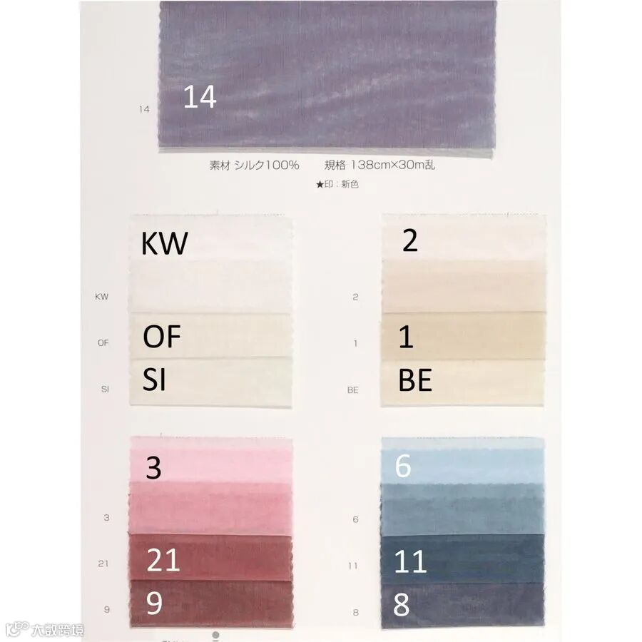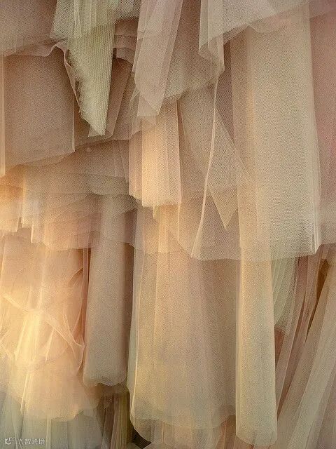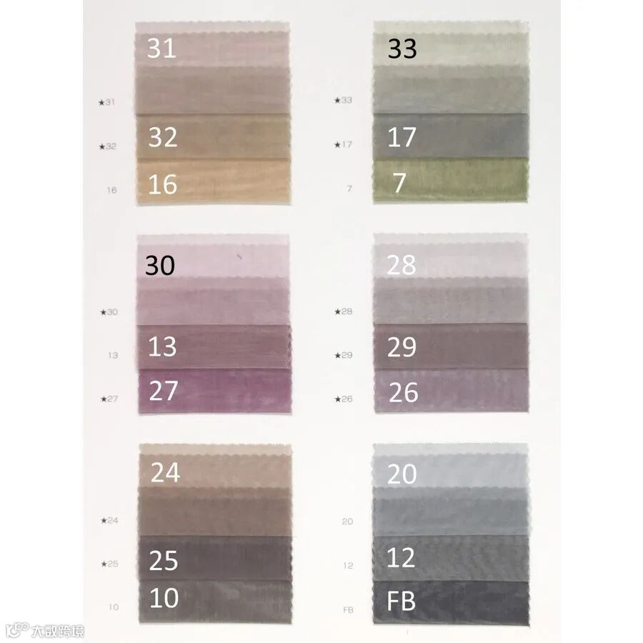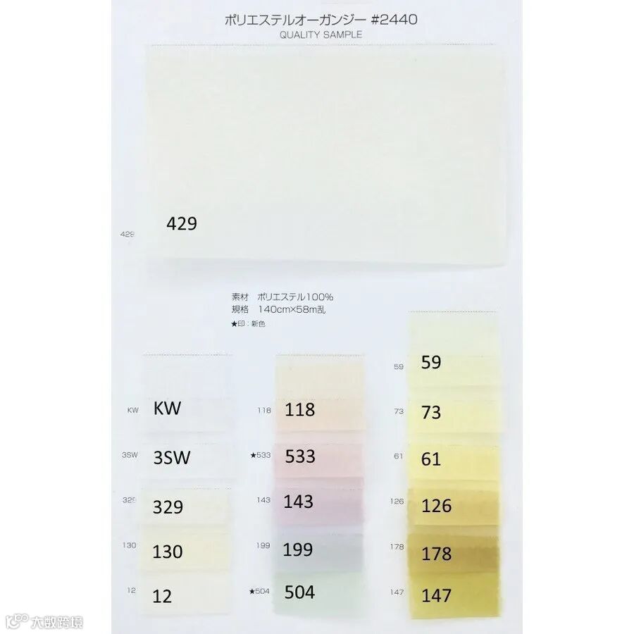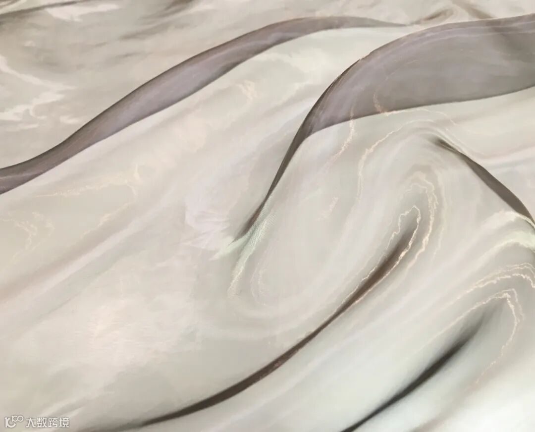 用超细涤纶纱织成,像空气一样轻,实现了丝般顺滑的手感和超薄透明感。普通的欧根纱也是使用极细的涤纶纱,但在这里使用的可以说是不到1/2纱支粗细的超级细涤纶纱。