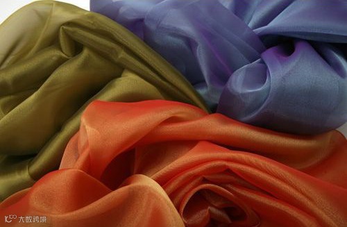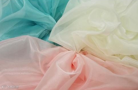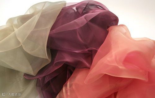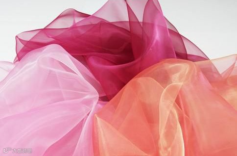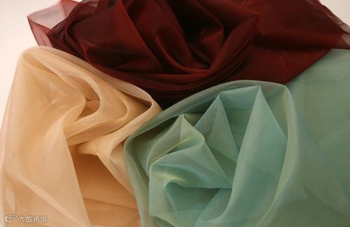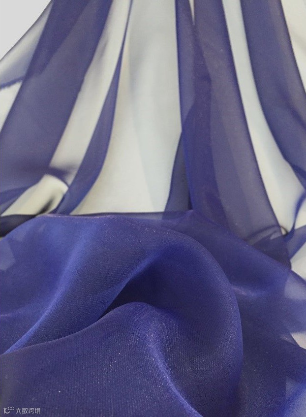 经纱和纬纱采用超细涤纶平织而成的涤纶100%欧根纱。纱线加捻的特点是适度的弹性和可以称之为的面料表面的颗粒光泽。虽然轻薄有透明感,但品质很稳定,可以说是最基础的欧根纱。