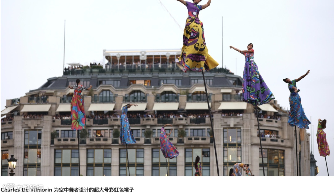 为 Compagnie XY 的杂技舞者设计了彩色印花短裤和 T 恤。除了媒体影响力和市场注意力外,设计师也向市场释放了更先锋的文化视角和创意方向。