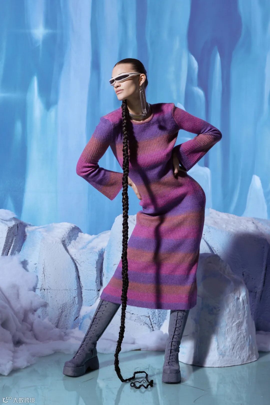 23/24秋冬关键色--草甸紫。紫色相在近年的流行色中一直占据着重要地位,更被赋予了新的形象:在元宇宙中也是重要的数字感代表色。而稍稍偏暖的草甸紫,为具神秘、高贵且具科幻感的紫色调带来温暖的柔和。