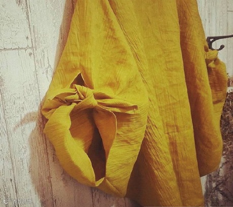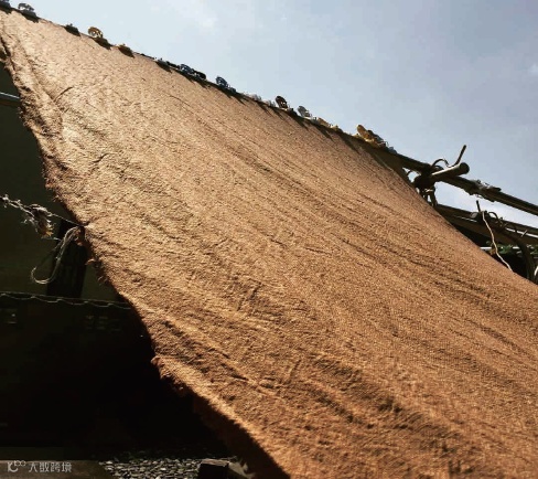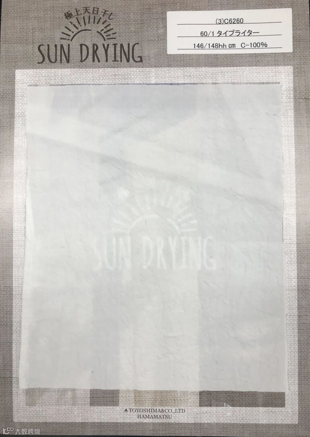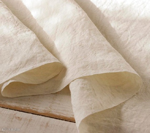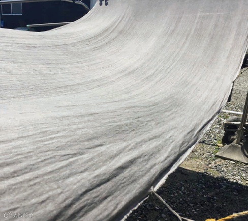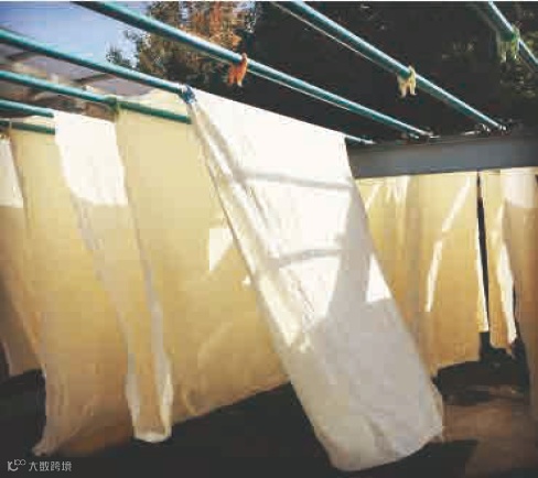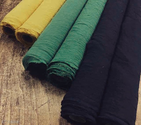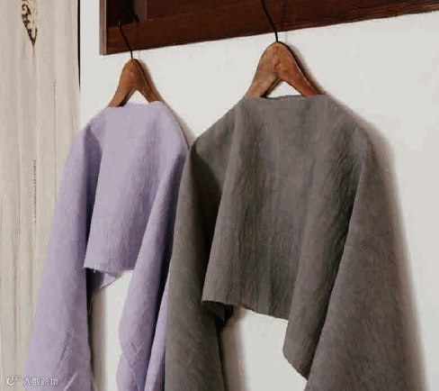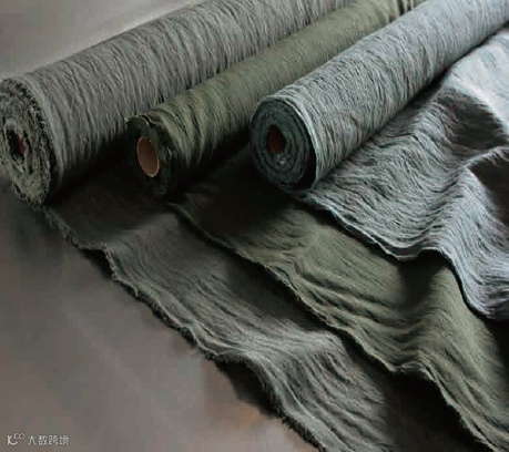 不对面料施加机械性的压力,张力等,经过长时间的精炼染色,为了在干燥时留有自然的表情,采用自然晒干。