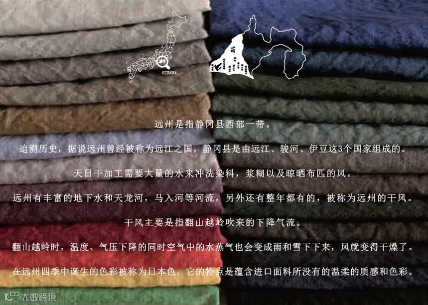 面料经由拥有独特技术的匠人进行手工染色,在远州独特的强风