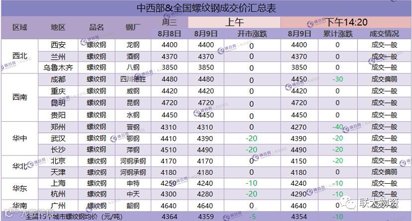 【螺纹钢成交价汇总】