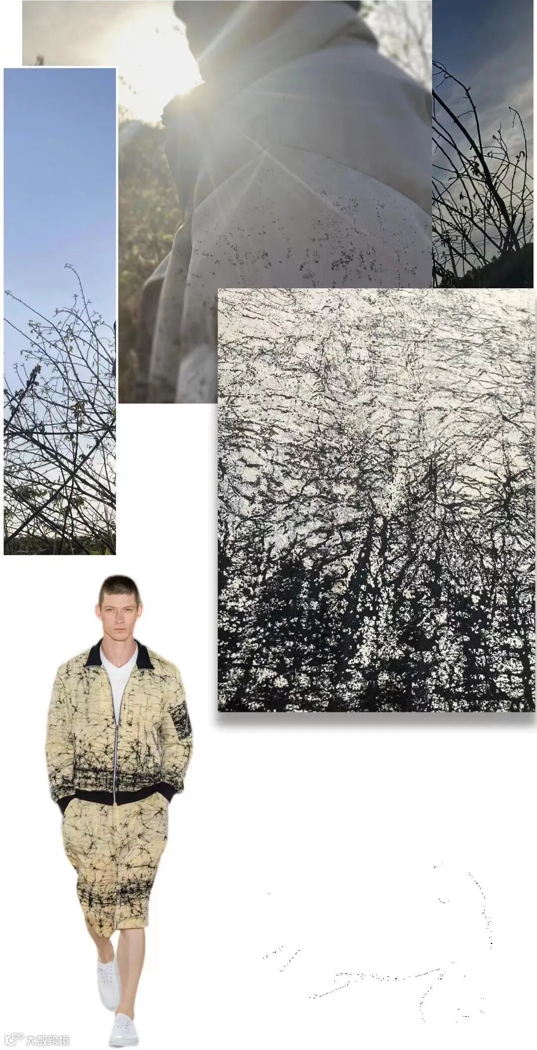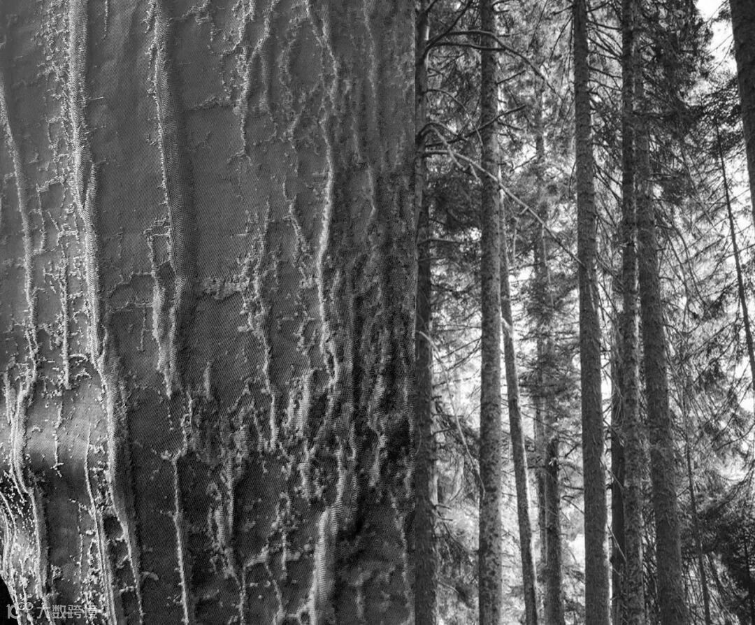 牛仔的触感,看似凌乱的花型却有着自然生长的统一美学,大概只有大提花的织造才能展现自然的美