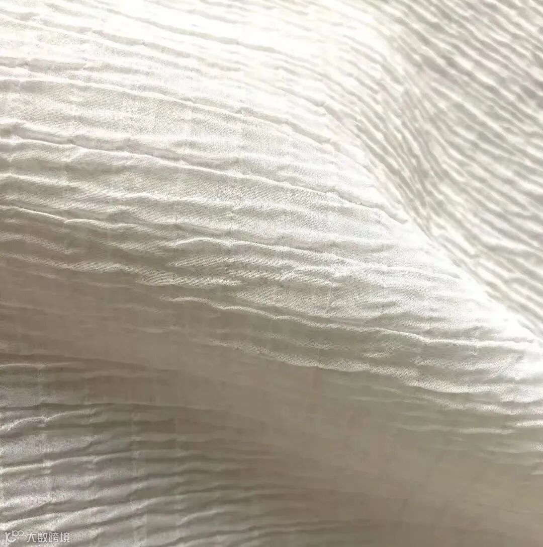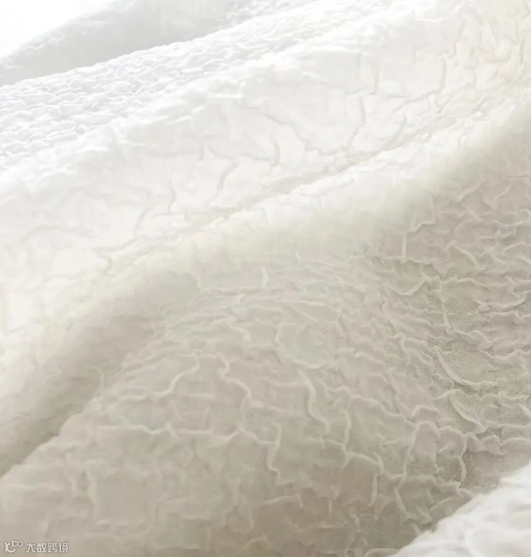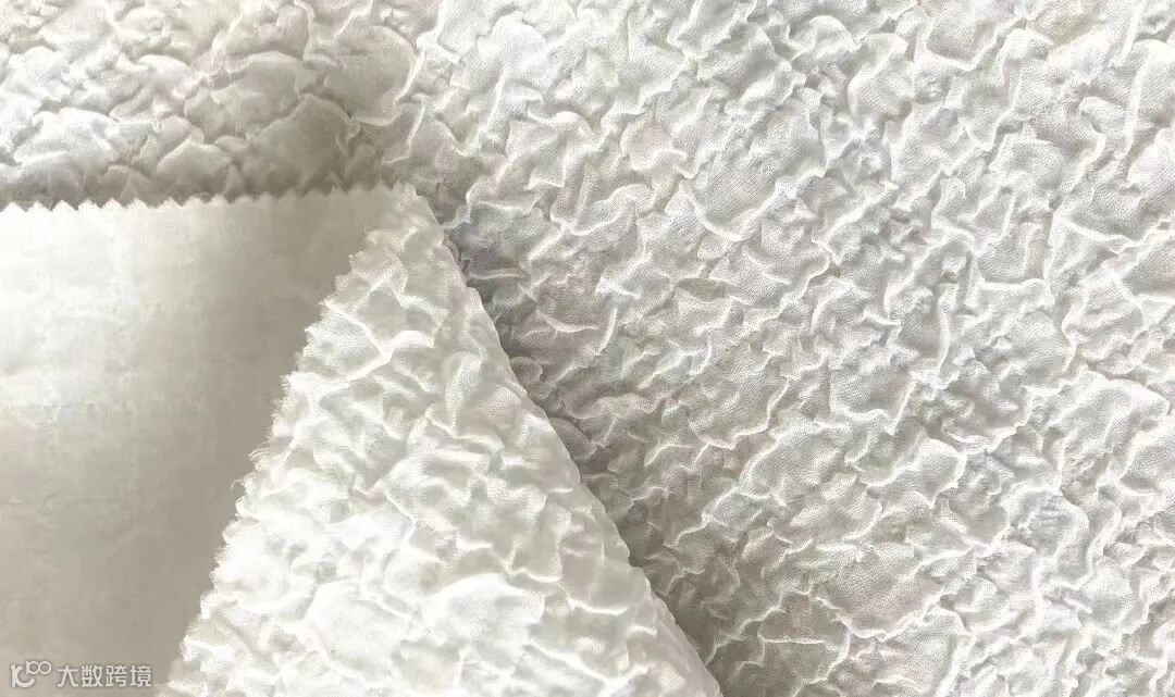 三维卷曲的低弹丝,经过一定比例经纬交织,遇热收缩形成泡泡肌理的布面效果,凸起的泡泡与肌肤触感,透气舒适,抗皱易打理