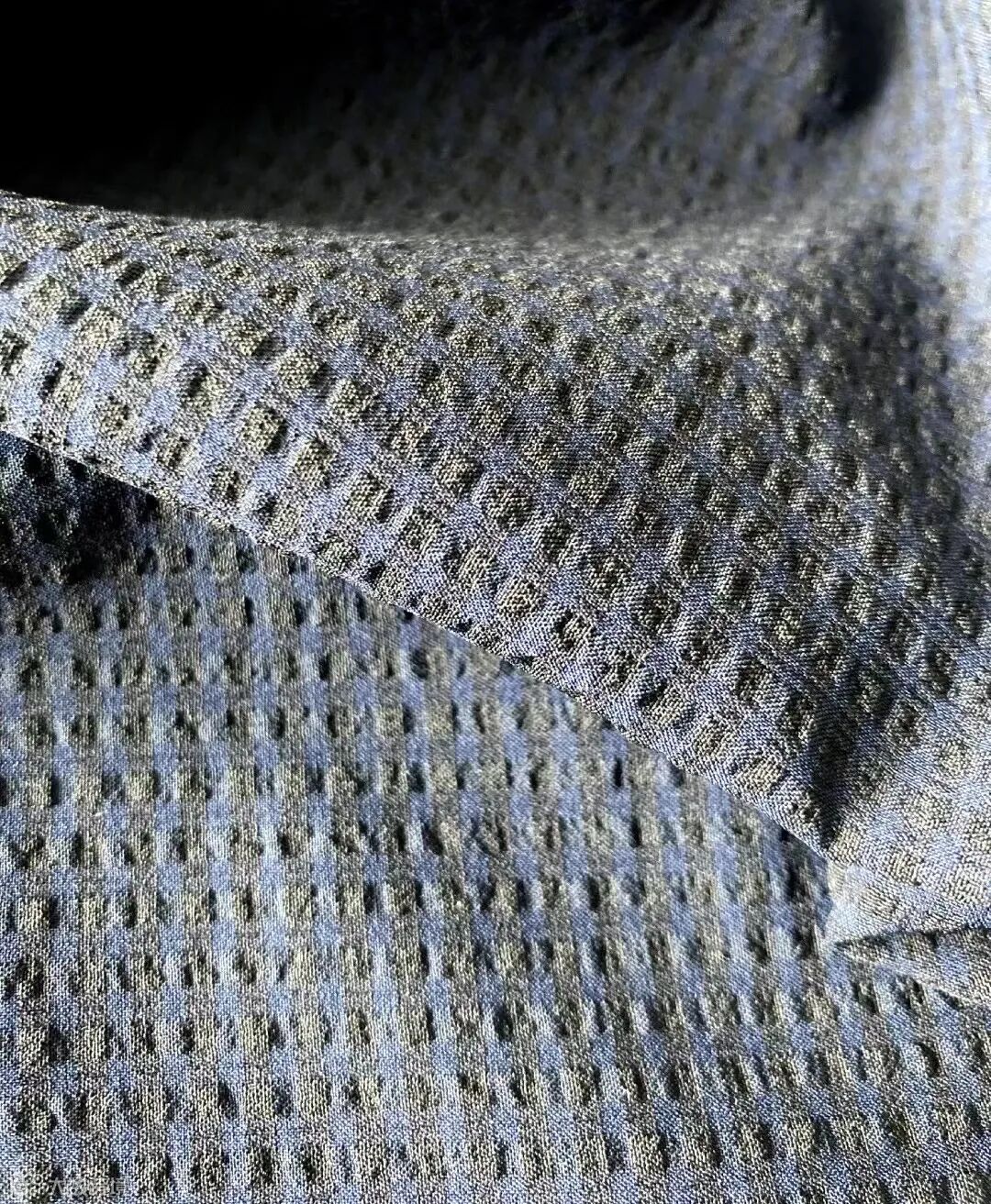 经向记忆丝,具有记忆功能的回弹性,纬向弹力纱,原料物性的差异产生泡泡感,清晰的骨架感呈现精致商务气质