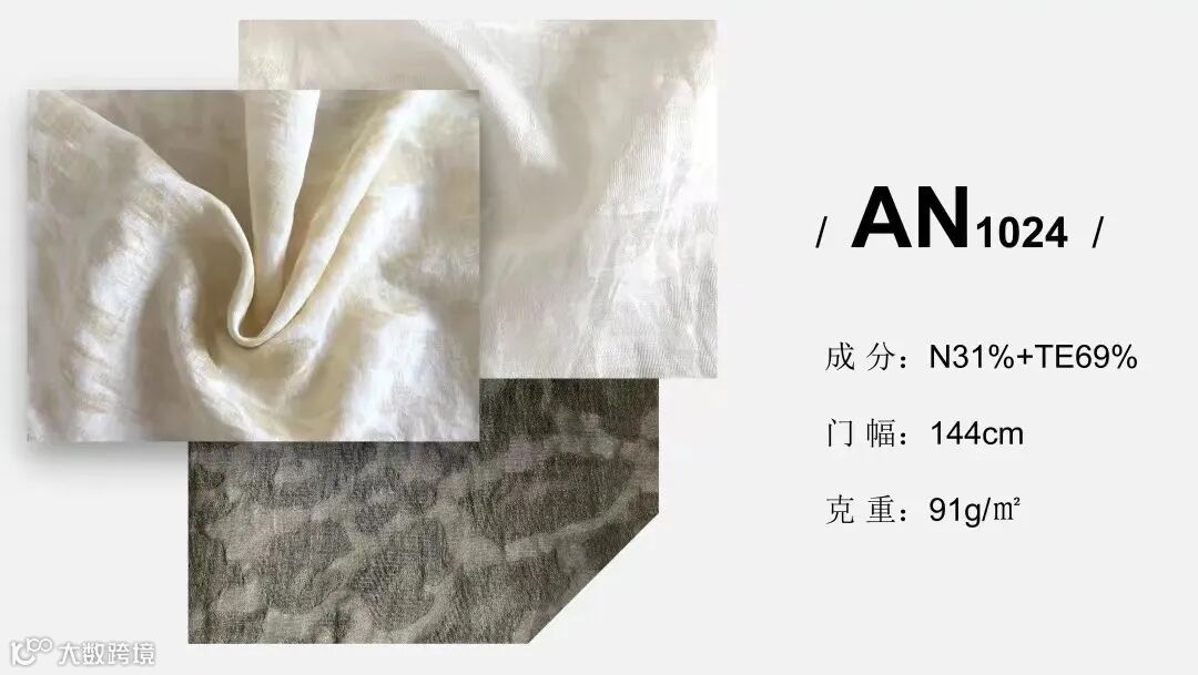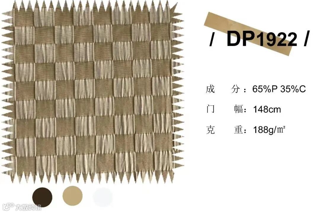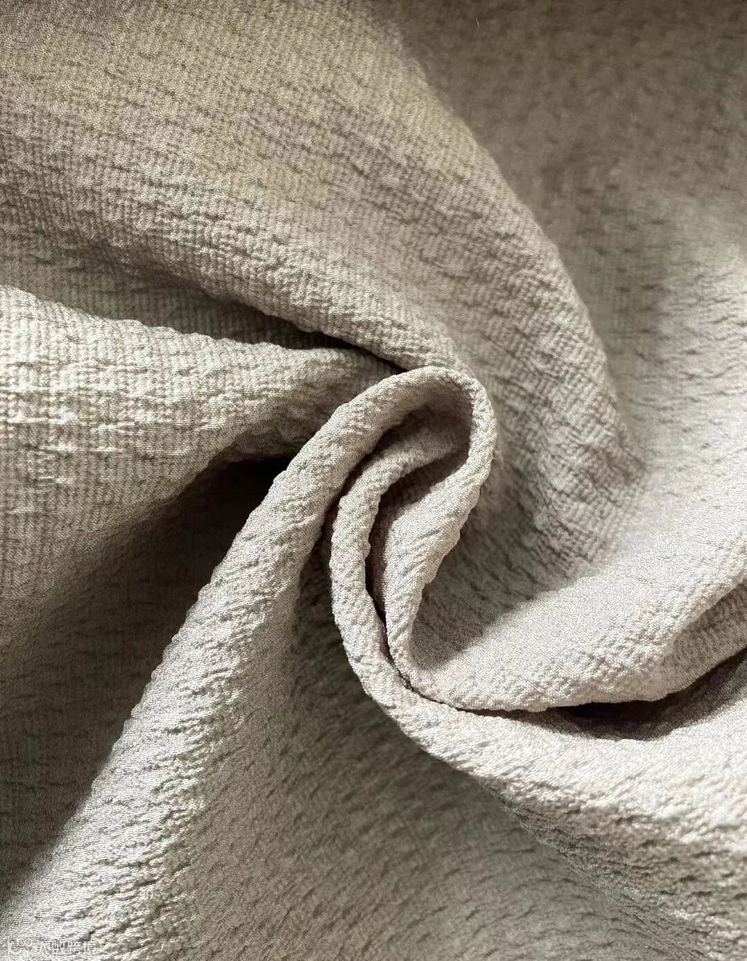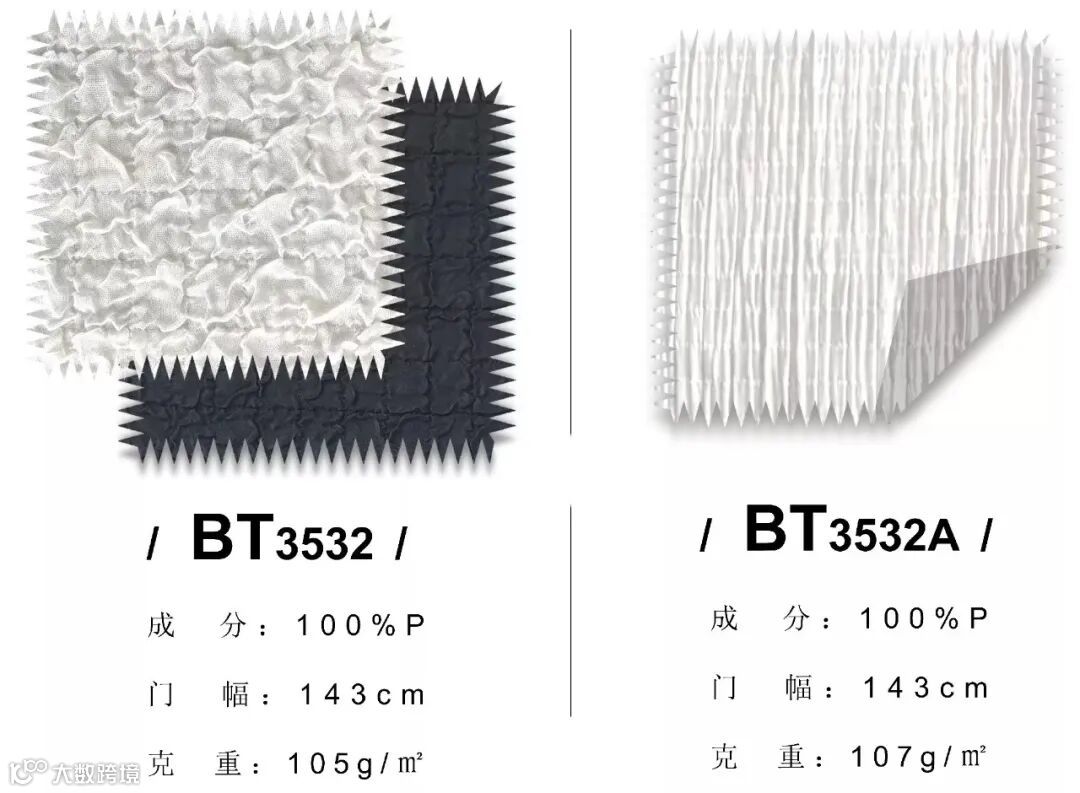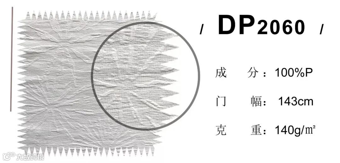 经纬向采用高收缩丝,经过特殊织造工艺,呈现一面平滑,一面收缩的肌理效果