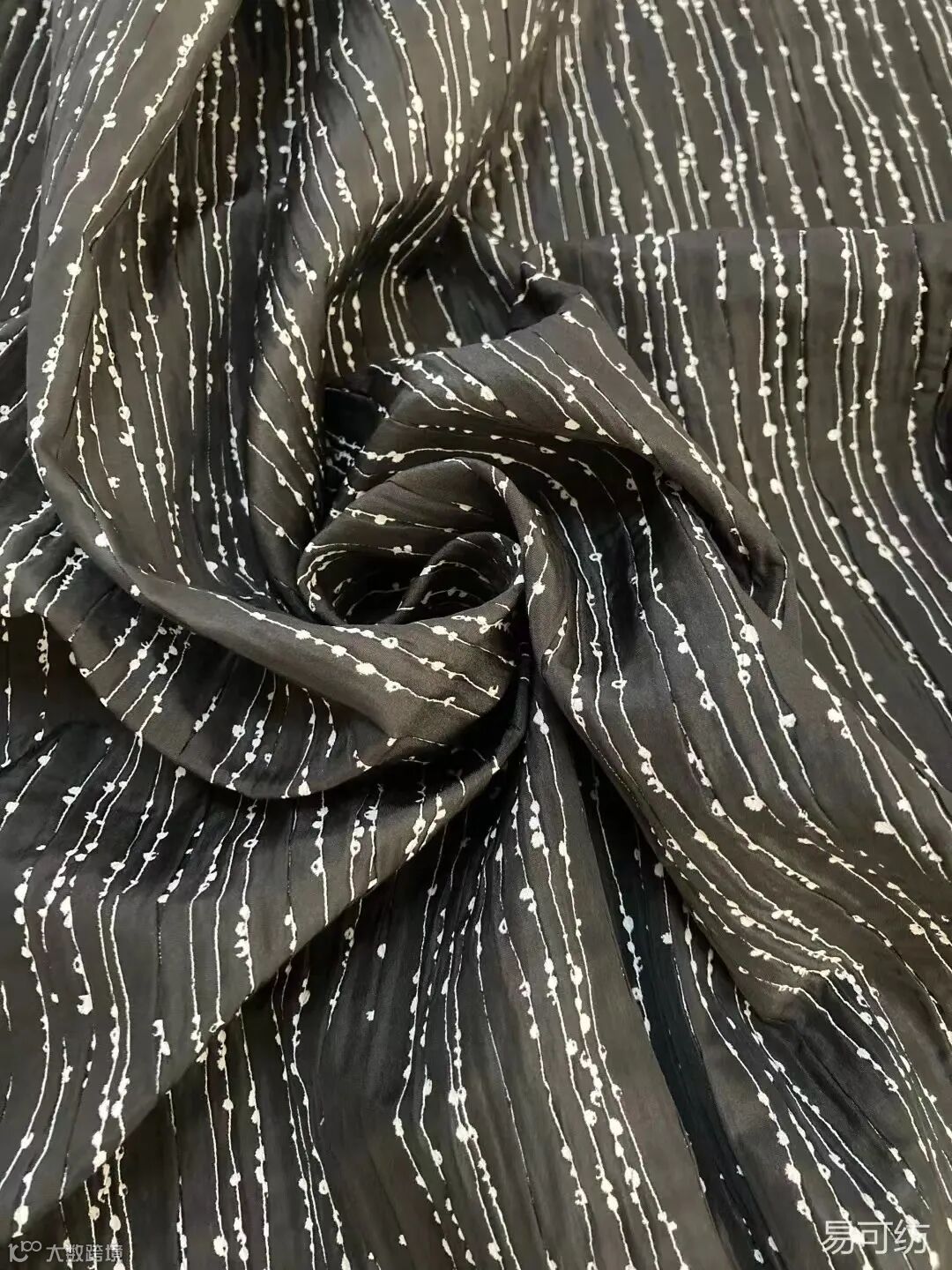 黑白双经,纬向弹力使凸起的层层纹理