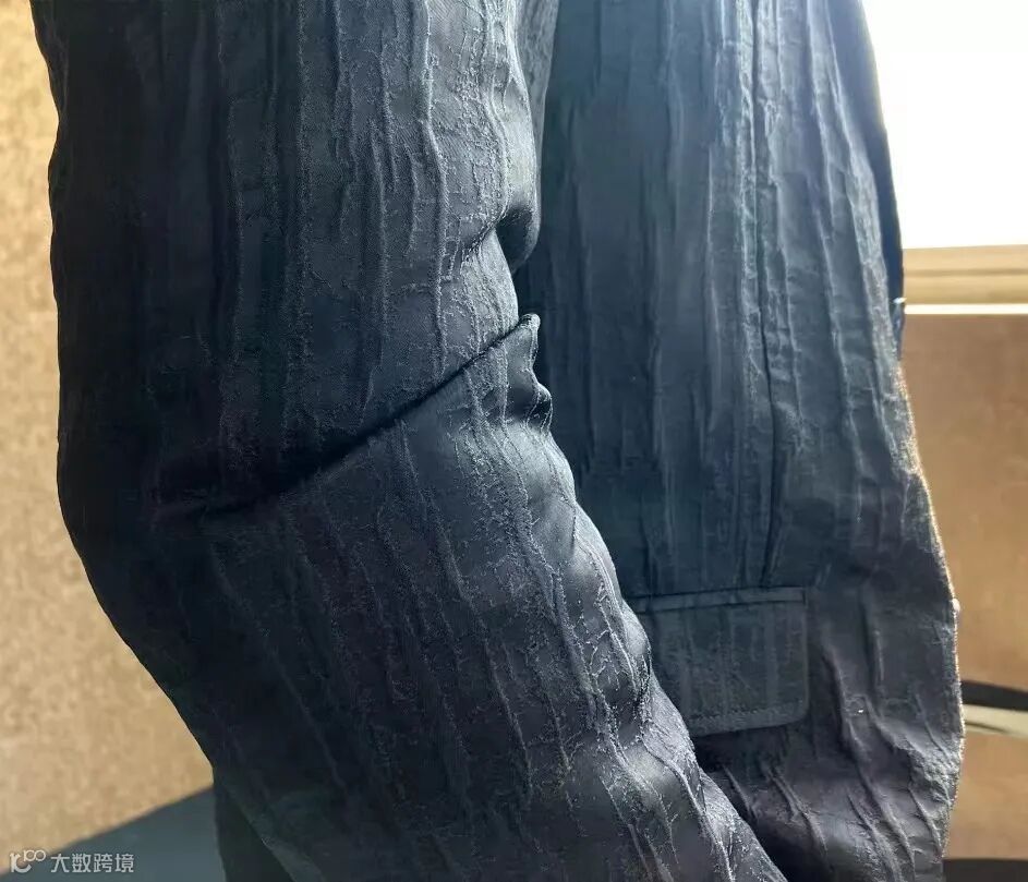 面料质地为全涤纶,纬向含有PBT半光弹力纤维,纤维的物性不同使得外观呈现自然褶皱肌理,棉质触感并具有抗皱性,弹性适中,没有束缚感