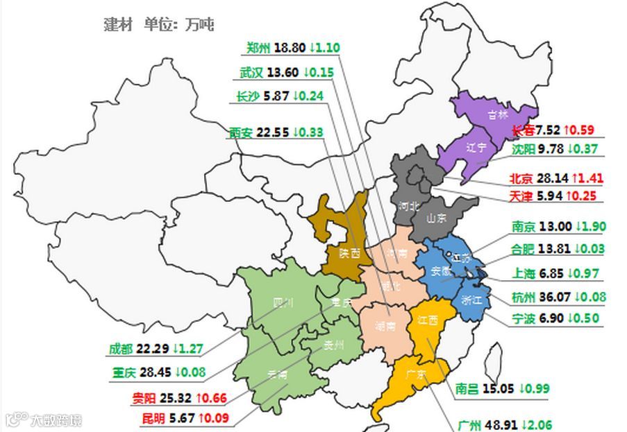 建材统计社会库存334.5万吨,较上周降7.1万吨。环保限产叠加下游需求的正常释放,建材多数城市均有不同幅度的下降。降幅较大的城市中,广州降2.1万吨,近期广东降雨较多,下游需求较差,但入库也大幅减少;南京降1.9万吨,受钢厂环保检修影响到货减少,成交良好,库存降幅比较明显。本周增库较多的城市主要是北京,增1.4万吨,受中非合作论坛会议影响,运输和工地需求受限,且贸易商多看好后市,库存增加。