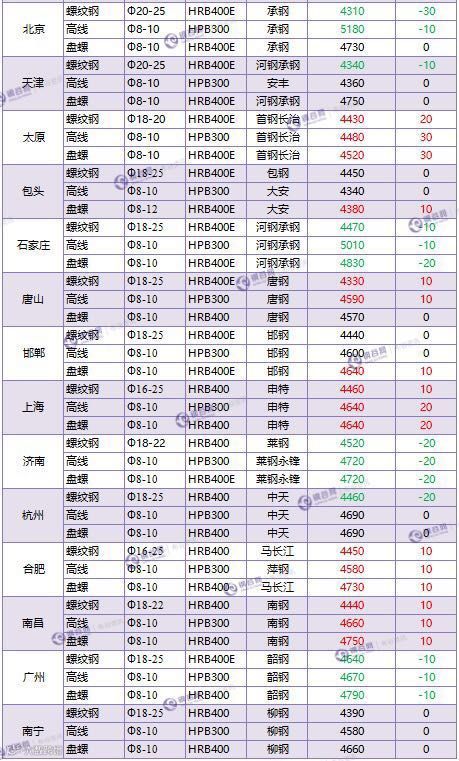 ▲6日马钢对马鞍山和合肥地区建材价格上调20,现合肥地区:高线4780,螺纹4540,盘螺4820;马鞍山地区:高线4760,螺纹4520,盘螺4800。