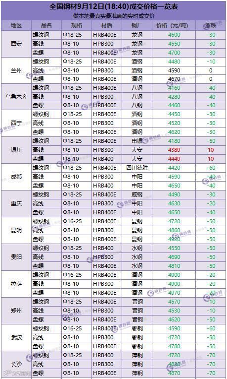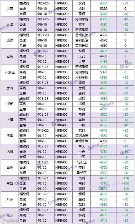 昨日全国成交价以20-100元/吨降幅为主。