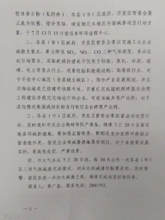 一、7月9日网传唐山市再次实施环保限产!