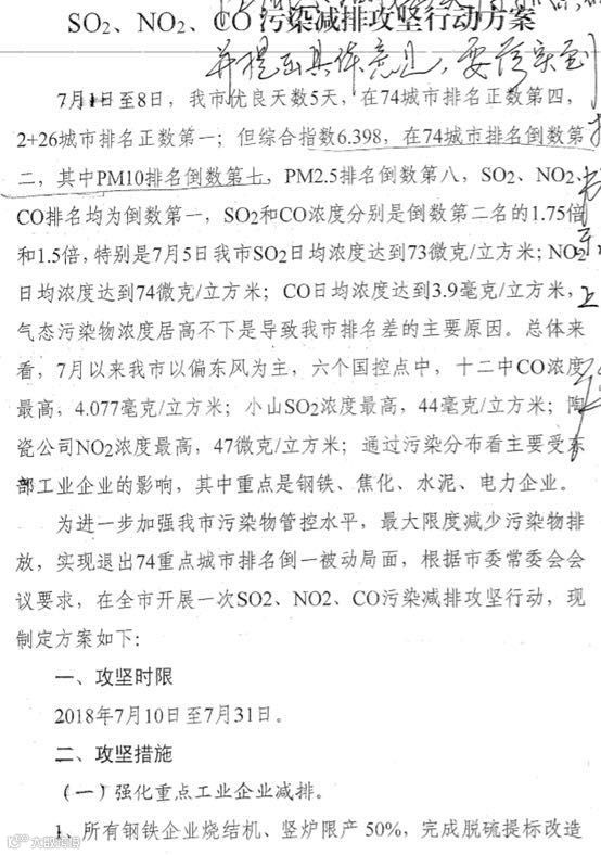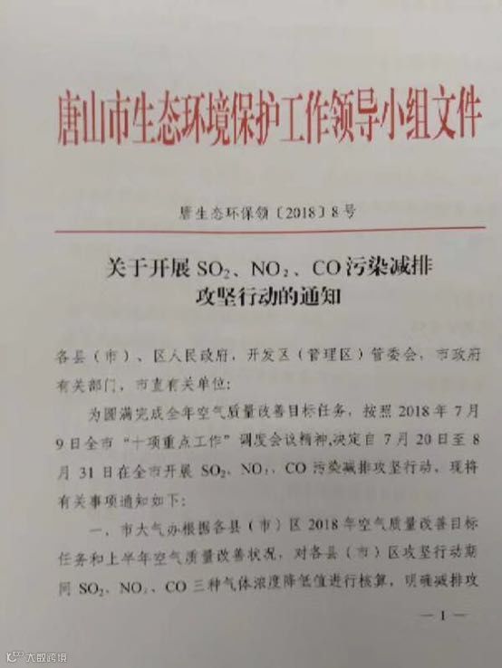 近日,唐山环保限产的消息在行业内备受关注,先是7月9日网传唐山环保限产的消息在行业内炸开了锅,紧接着7月10日一份唐山地区政府讨论性内部文件面世,然后7月11日唐山市生态环境保护工作领导小组出台《关于开展SO2、NO2、CO污染减排攻坚行动的通知》,7月15日唐山丰润区、迁安市分别出台具体限产方案,下面对此次环保限产进展进行梳理: