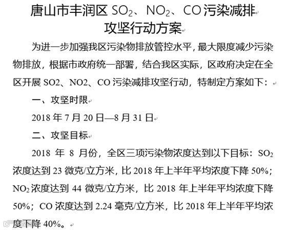 四、唐山丰润区出台具体限产方案