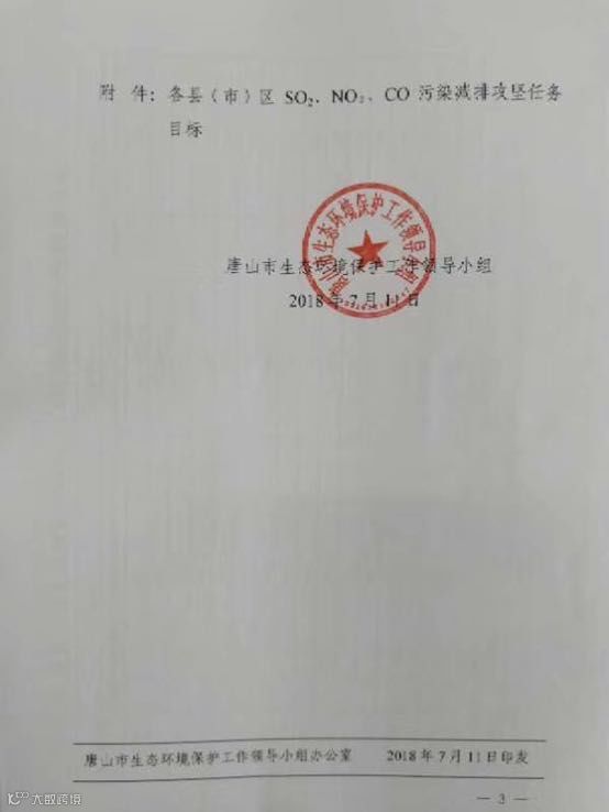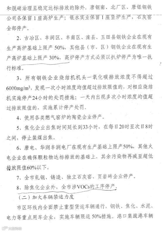 三、唐山市环保限产红头文件正式出台!