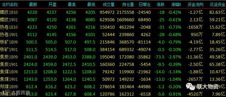螺蚊1810出现高位调整行情,暂时上方压力4260附近,回调支撑5日均线4200,若跌破5日均线失守会再次回踩10日均线4150附近;远月螺纹1901合约同样面临高位调整,上方压力4140附近,回调支撑4060附近。