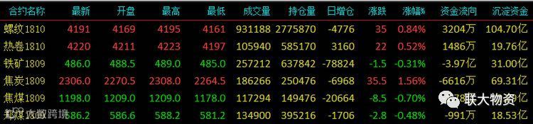 螺蚊1810继续冲高,上方压力4200,下方支撑4160;rb1901突破4000后,上涨空间打开,回调支撑3980;