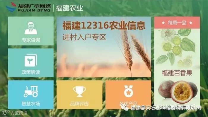 “该项升级的技术是通过福建广电网络高清电视云平台开设‘福建农业频道’电视专区,整合当地政府、农产品基地与企业、农业专家、消费者等资源,将农业政策、农业‘五新’技术通过‘互联网+TV’信息平台传送到全省500多万的农户家庭。”记者在采访相关负责人时了解到,该技术还借助电视媒介,实现农产品从基地建设、产品生产到品牌宣传、销售管理环节全过程可视化管理与全方位宣传,通过开展线上与线下系列活动,打造具有福建特色的农业产业。