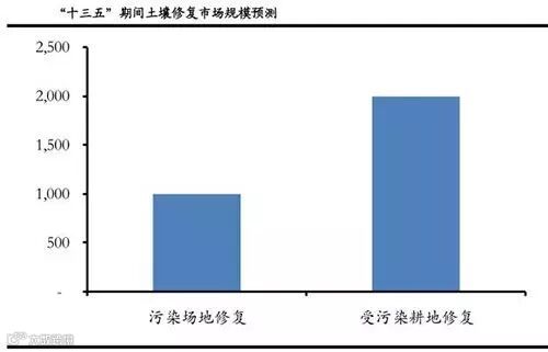 根据中国土壤环境修复产业技术创新战略联盟等机构的调研并综合国内外企业数量、搬迁污染调查、国外对比情况所作预测,我国的污染场地数量在100-200万块。假设每个污染地块平均修复成本100万元,若“十三五”期间完成中10万块污染场地修复,则对应市场空间为1,000亿元。
