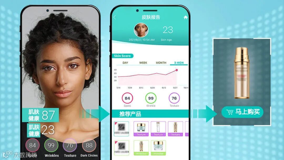 AI测肤:利用AI技术,智能皮肤检测仪能够精准分析客户的肤质、肌肤年龄、健康值、肌肤问题等详细皮肤检测报告直接输送到客户APP或小程序账号上,为客户提供个性化的护肤建议和产品推荐。