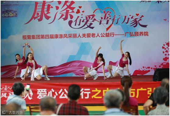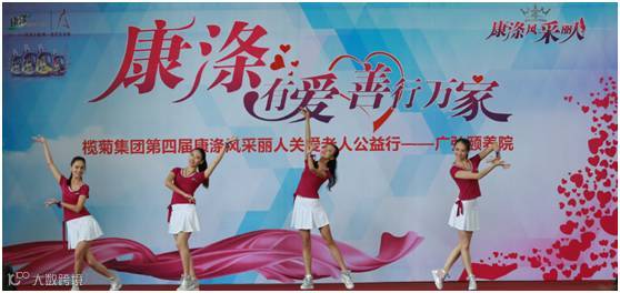 为了给颐养院中的公公婆婆带去欢乐,榄菊集团除了准备丰富实用的礼物外,还让康涤风采丽人为老人们表演了精心排练的精彩节目。有经典的老歌《甜蜜蜜》、《万水千山总是情》《千千阙歌》等脍炙人口的歌曲让老人们乐得合不拢嘴,有的婆婆也跟着哼起来;有的丽人跳起了《小苹果》《最炫康涤风》,活泼动感的音乐节奏带动了在场每一个人;还有的丽人表演了充满爱心的手语舞蹈《有你在的地方就是天堂》《感恩的心》,向现场老人们传递祝福和感恩;现场一位老伯伯还自告奋勇地拿过话筒,张口就来了一首党歌,演绎水平不亚于专业歌唱家。丽人们用年轻人专属的激情给老人们带去更多的快乐,整个会场充满了欢声笑语。