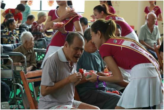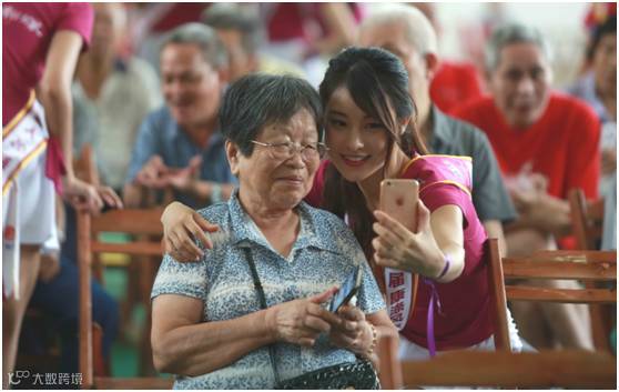 随后,丽人们站成一排,逐一介绍自己,其中外形靓丽甜美的黄绮恬,最得老人欢心。她一句“我叫黄绮恬,你们可以叫我甜甜,就像你们吃的西瓜一样甜”,欢快的话语一下逗乐了全场的老人。在丽人做自我介绍的时候,公公婆婆们还特意拿出了自己的手机,他们表示要把这些靓丽的女孩们拍下来,平时可以多看看,想想自己年轻时候的模样。