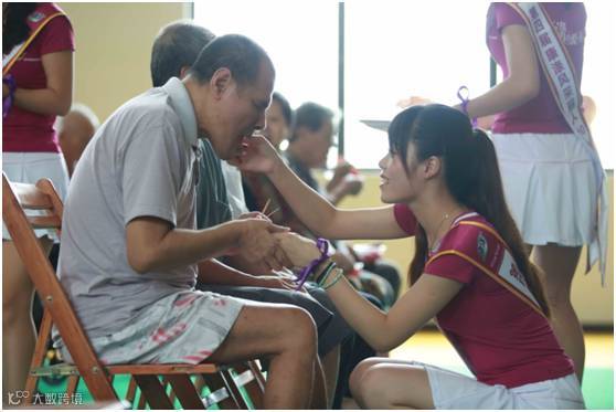 与上午阴雨连绵的天气不同,中午太阳公公也露出了灿烂的笑容,榄菊集团携手康涤风采丽人一行人怀着无比激动的心情欢快地出发,经过一个多小时的车程,队伍顺利抵达广弘颐养院。“老奶奶,你身体还好吗?”一进入颐养院,高金娜经理便亲切的问候,拉开了此次公益行的帷幕。现场工作人员精心地为老人准备了水果,丽人们纷纷端上水果,走到老人身边,耐心地喂他们吃水果,并叮嘱他们慢慢吃,小心噎着,还不时用纸巾擦掉老人们嘴边的果汁。细心温暖的举动让老人家受宠若惊,并赢得了老人家的赞许,有的老人忍不住擦起泛红的双眼。