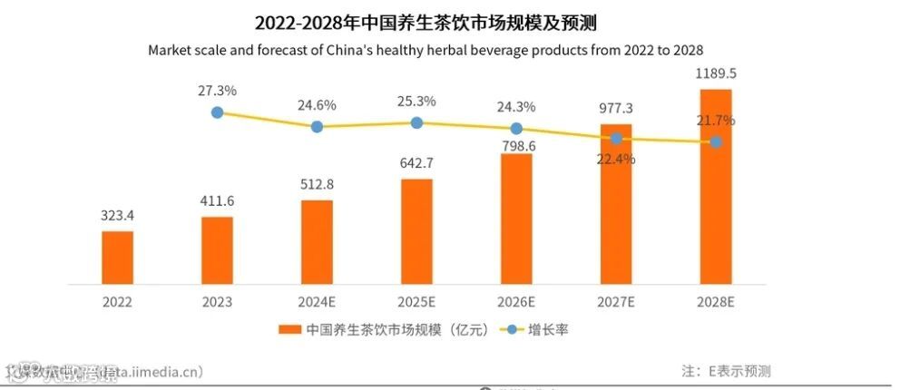 据艾媒咨询数据揭示,2023年中国养生茶饮市场已经飙升至411.6亿元,同比增幅高达27.3%,预计到2028年将突破千亿元的宏伟门槛。这一市场现象的背后,反映了消费者健康意识的显著提升以及对养生茶饮需求的急剧增长。