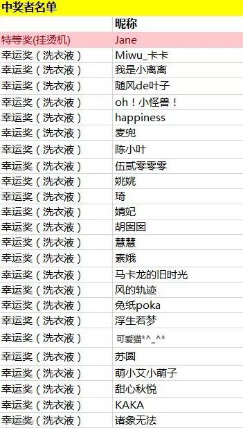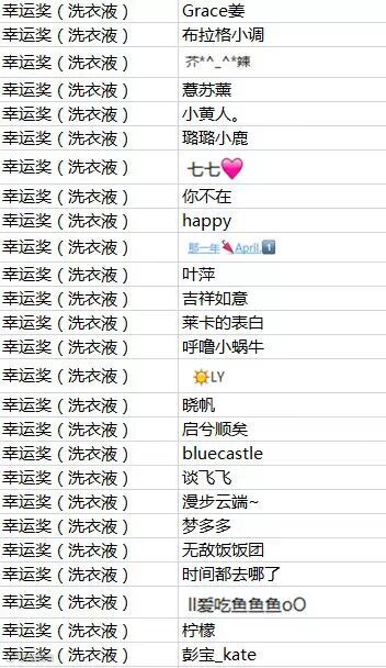下面是#夏日洗衣大作战#的活动中奖名单,中奖者请尽快联系康涤~