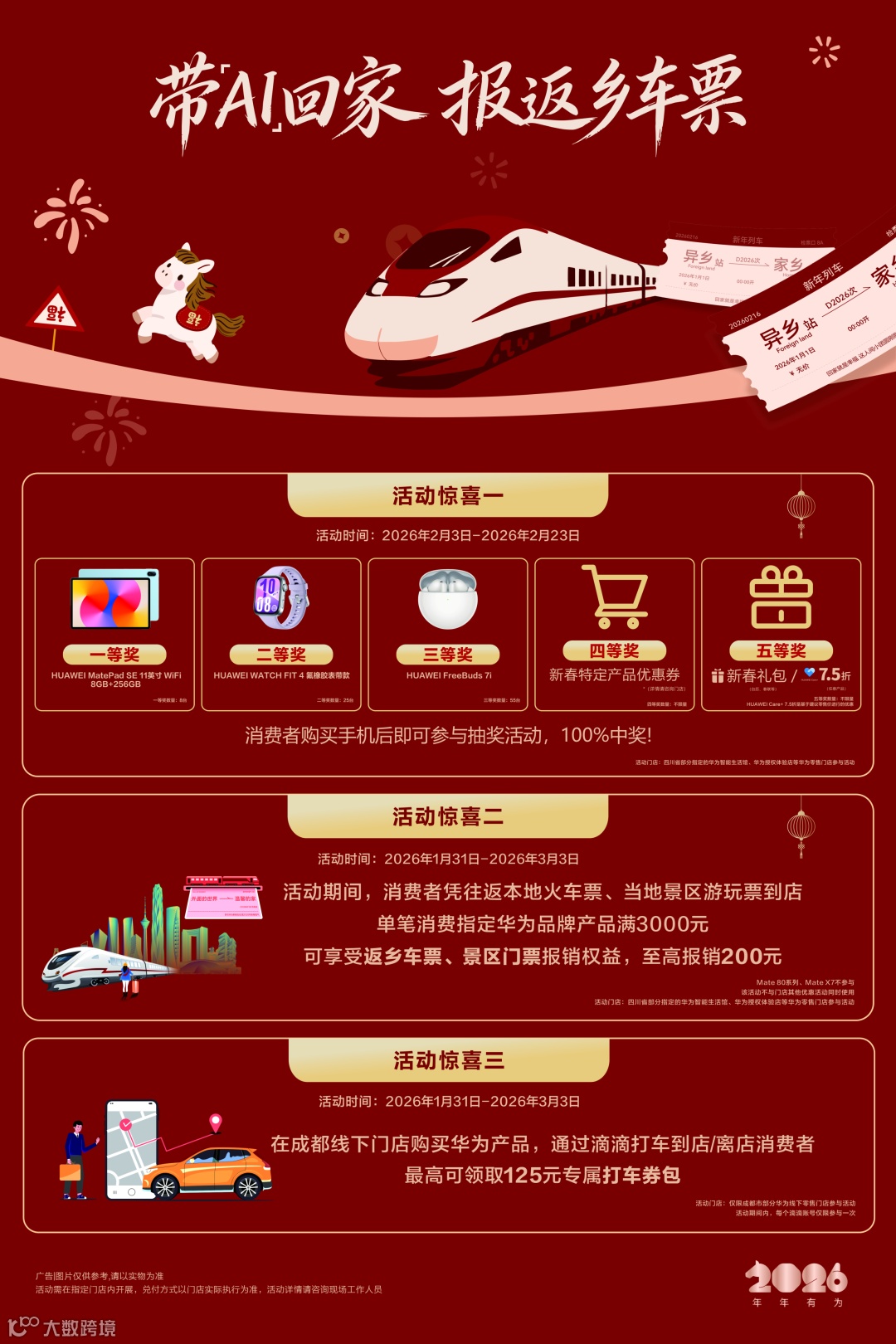 华为线下门店购新机,享购手机抽奖百分百中奖,返乡车票报销,滴滴打车券