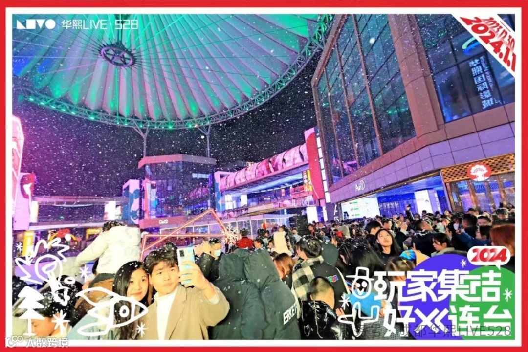 华熙 LIVE・528 中心广场将打造 “雪绒花・雪景 live”,让大家即便身处成都也能尽情玩雪、畅快拍照啦!现场雪花纷纷扬扬飘落,仿佛置身于梦幻的童话世界之中。