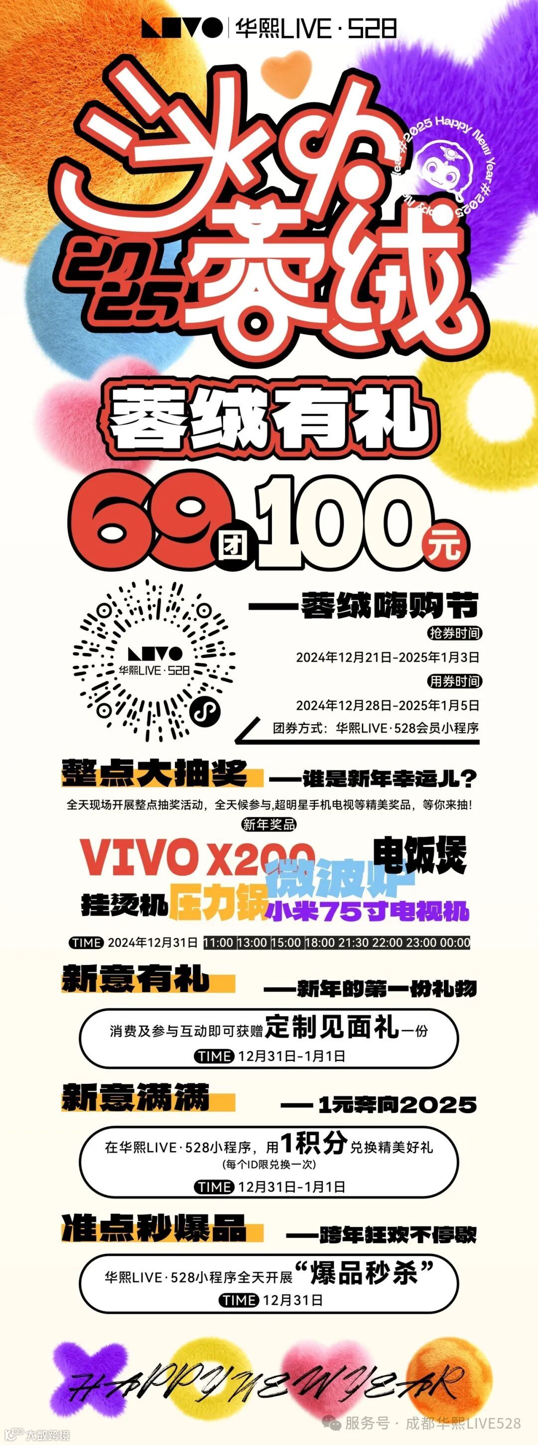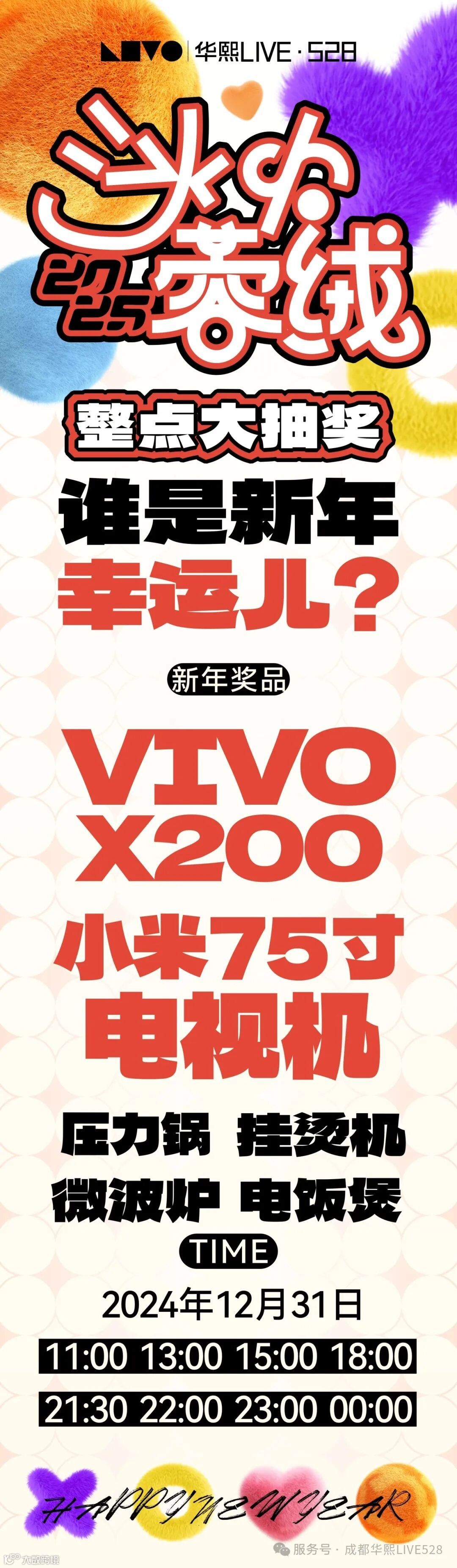 新年奖品:VIVO X200、小米75寸电视机、压力锅、微波炉、电饭煲、挂烫机等