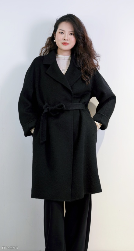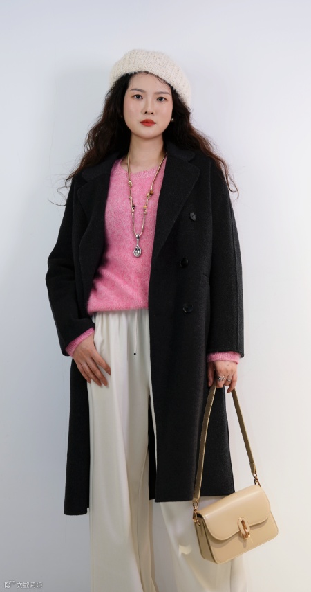 山羊绒面料垂坠感十足,表面泛着细腻光泽,是提升气场的质感之选,让你在冬日寒风里,也能美得从容自在。