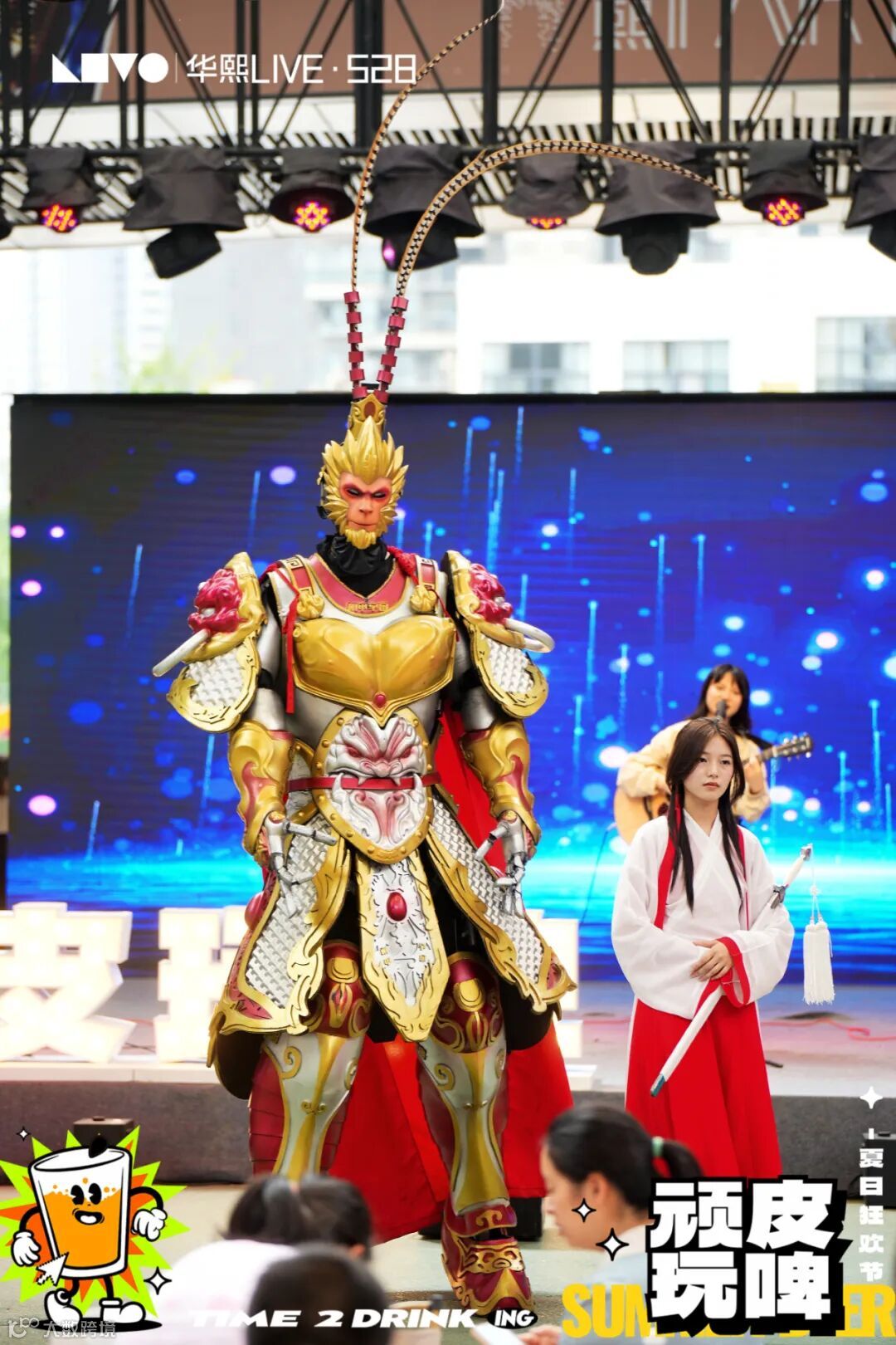 身披金甲,手持金箍棒的大圣将穿梭在人群中