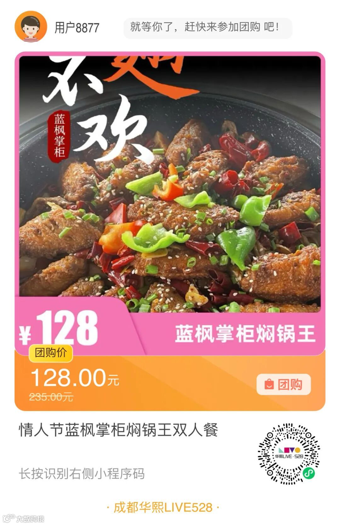 情人节【蓝掌柜焖锅王】双人餐