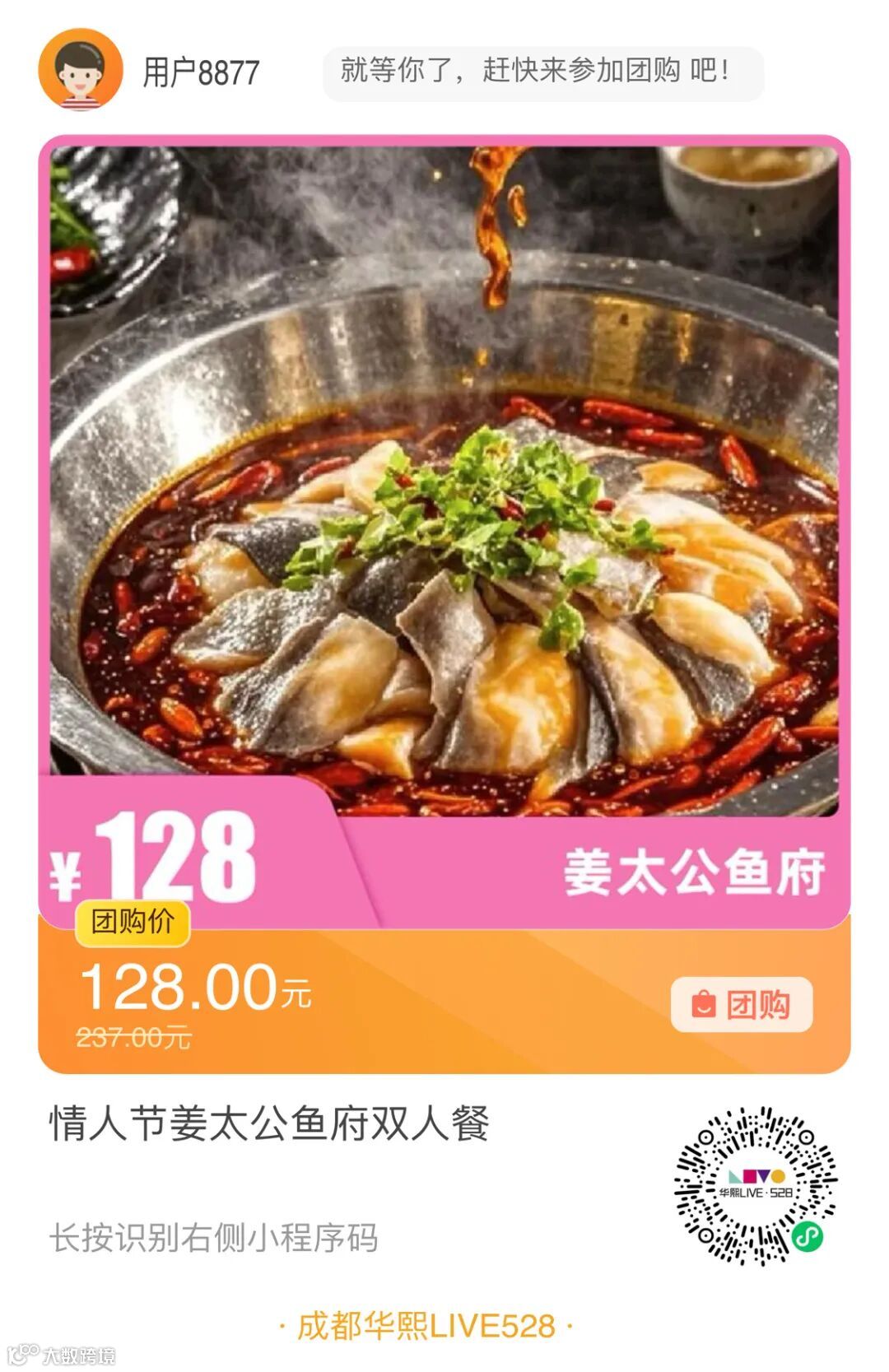 情人节【姜太公鱼府】双人餐