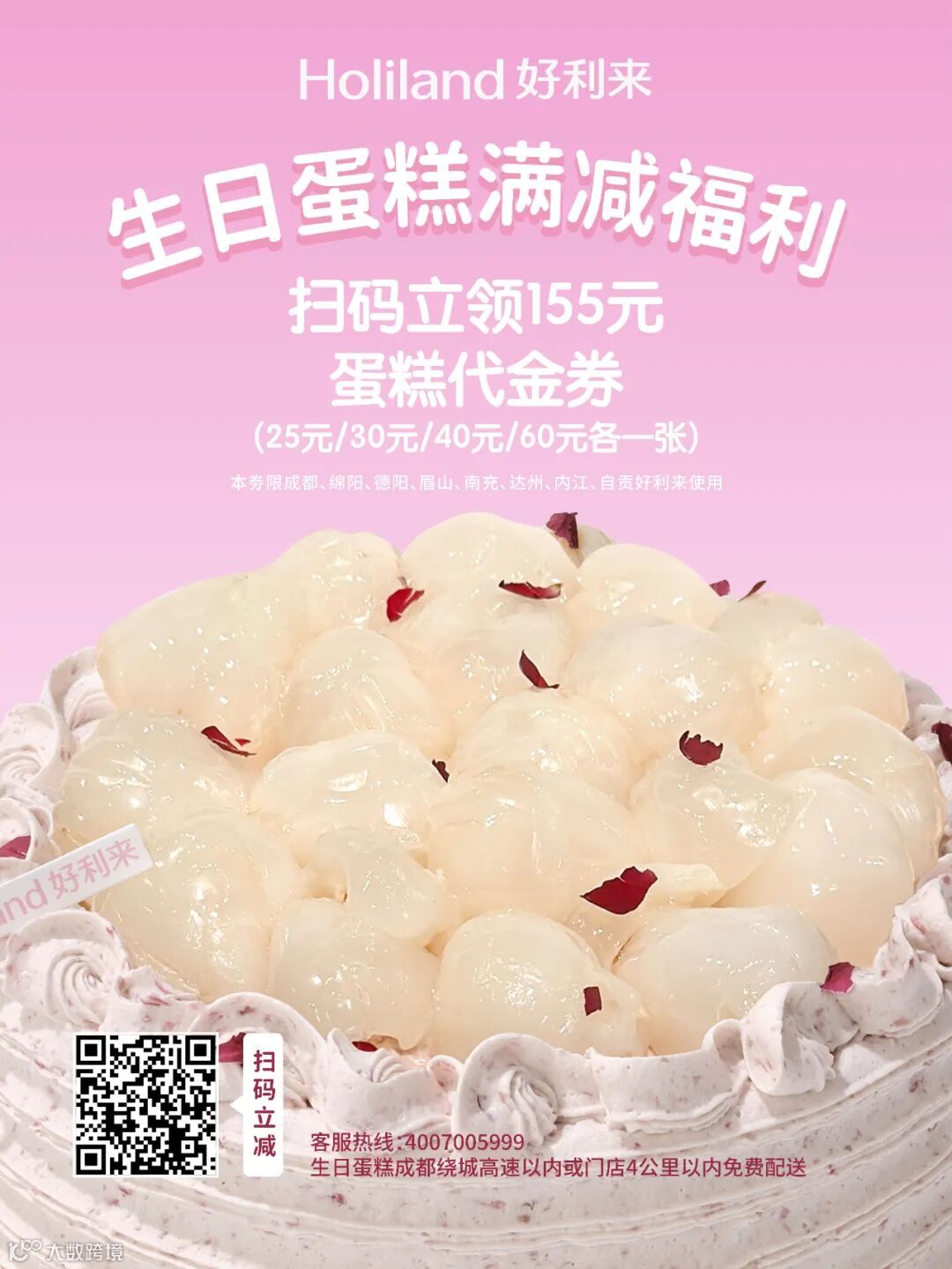 扫码立领155元蛋糕代金券