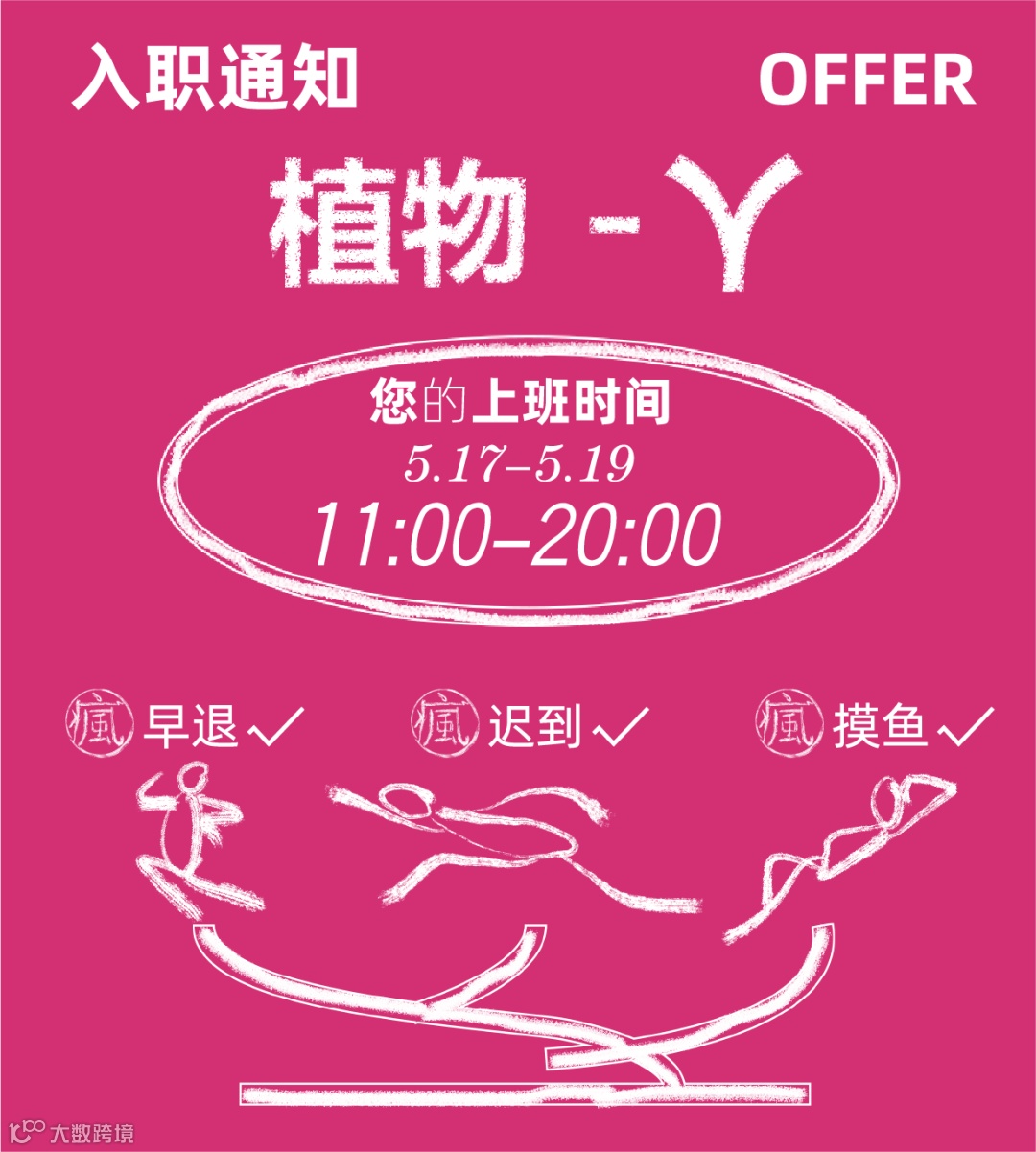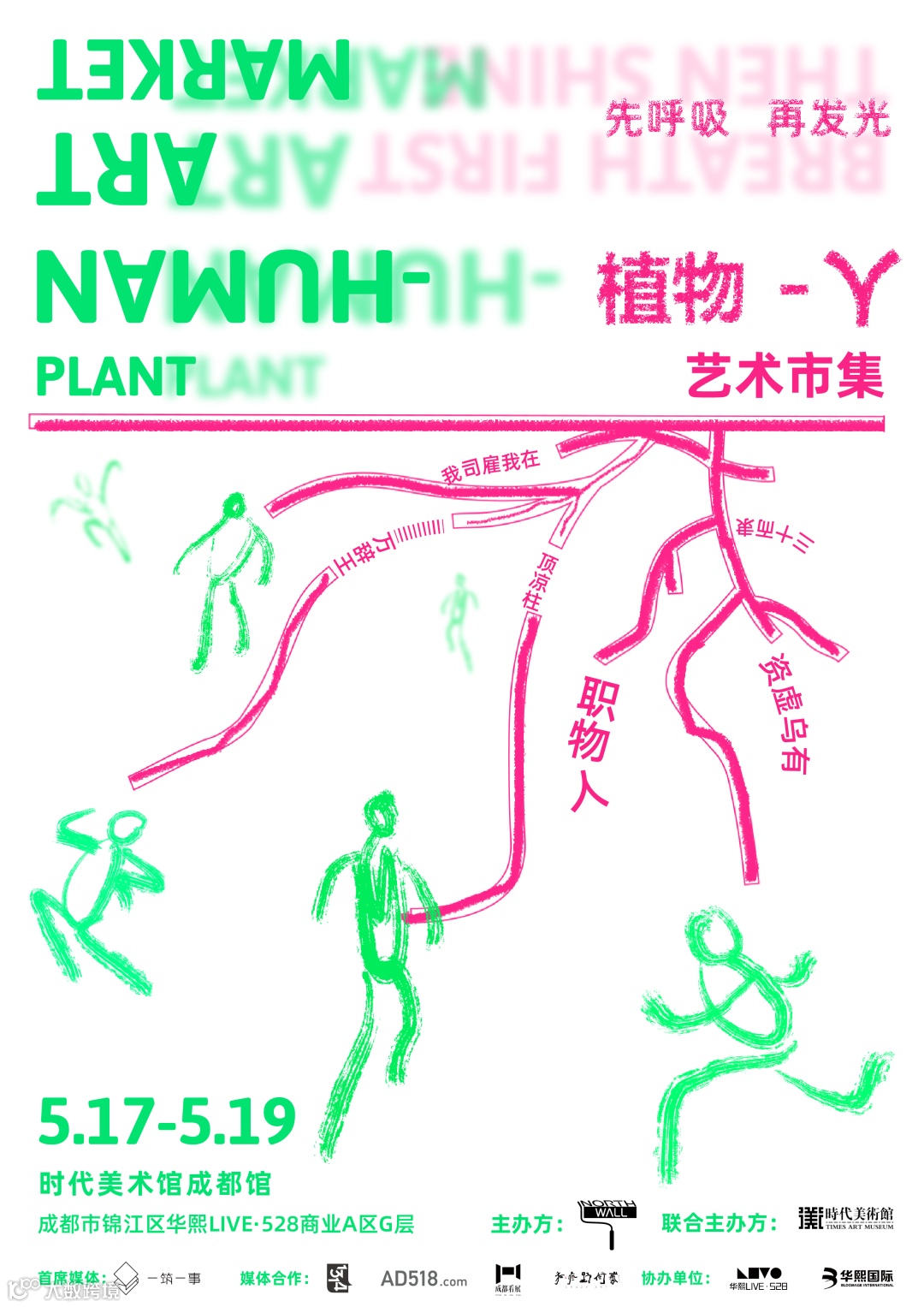 “植物-人”展期为2024年5月17日至5月19日(11:00 - 20:00),希望观众在喧嚣繁杂的生活中,获得暂停蓄力的“充电时刻”,以更轻松,自在的视角探索更多维的思考,也许能量加满后的故事更绚烂多彩,更多新奇体验不断加载中........惊喜等你亲自来揭晓帷幕!